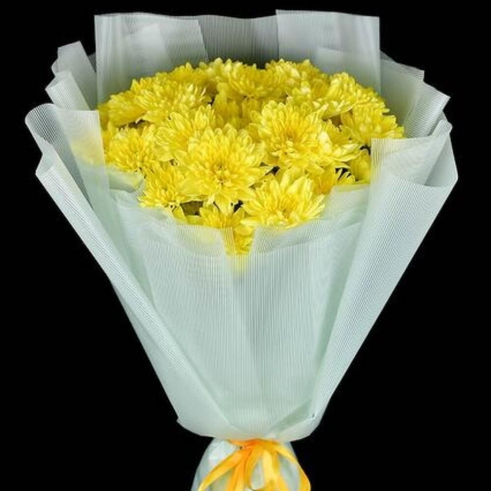 Лента - 1 шт. Хризантема кустовая - 9 шт. Пленка матовая - 2 шт.