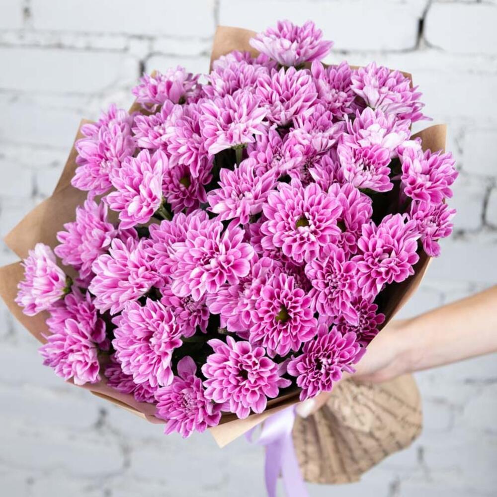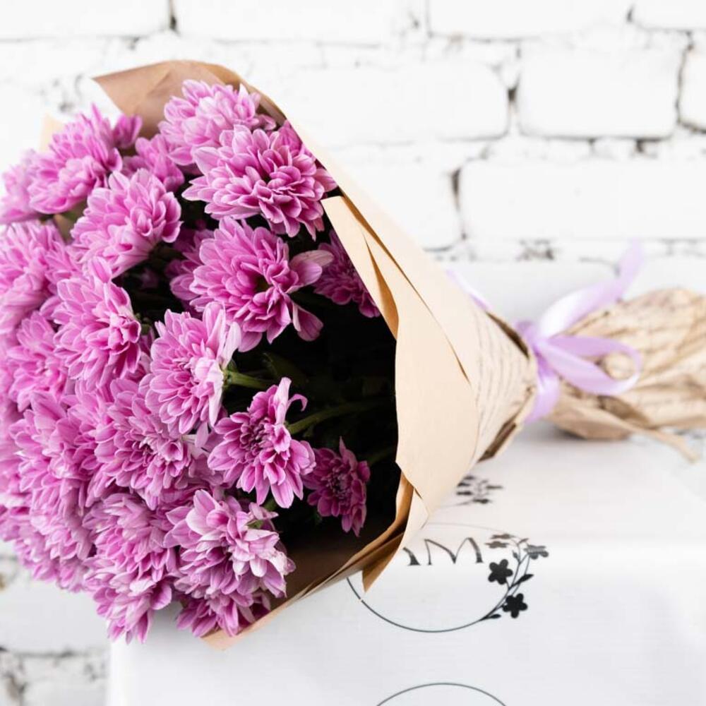 Лента - 1 шт. Хризантема кустовая - 9 шт. Пленка матовая - 2 шт.