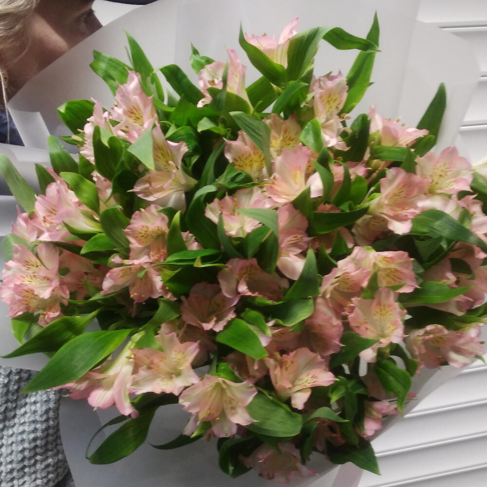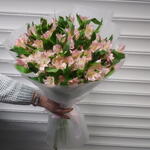 Моно-букет из нежно-розовых альстромерии в дизайнерской упаковке для ваших близких