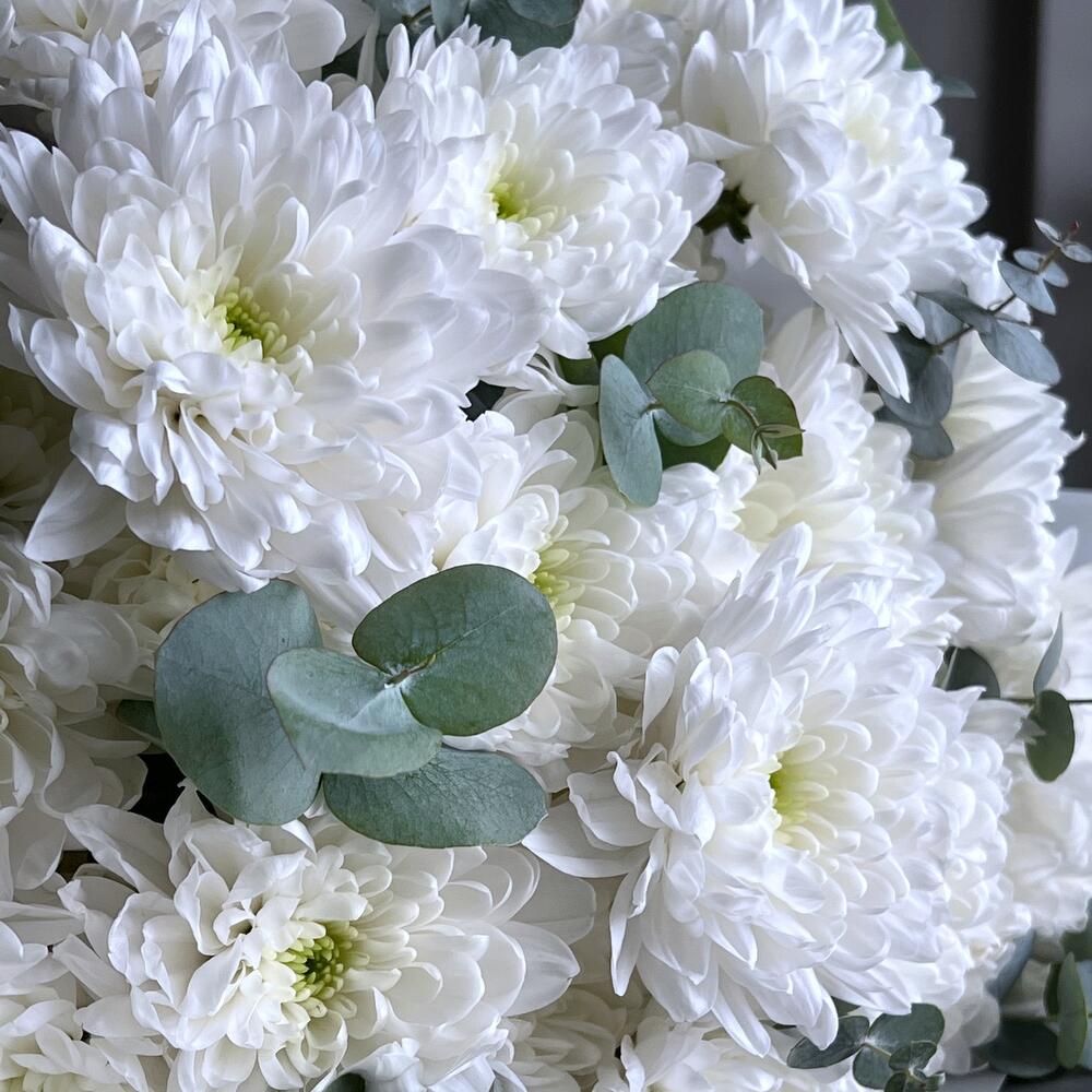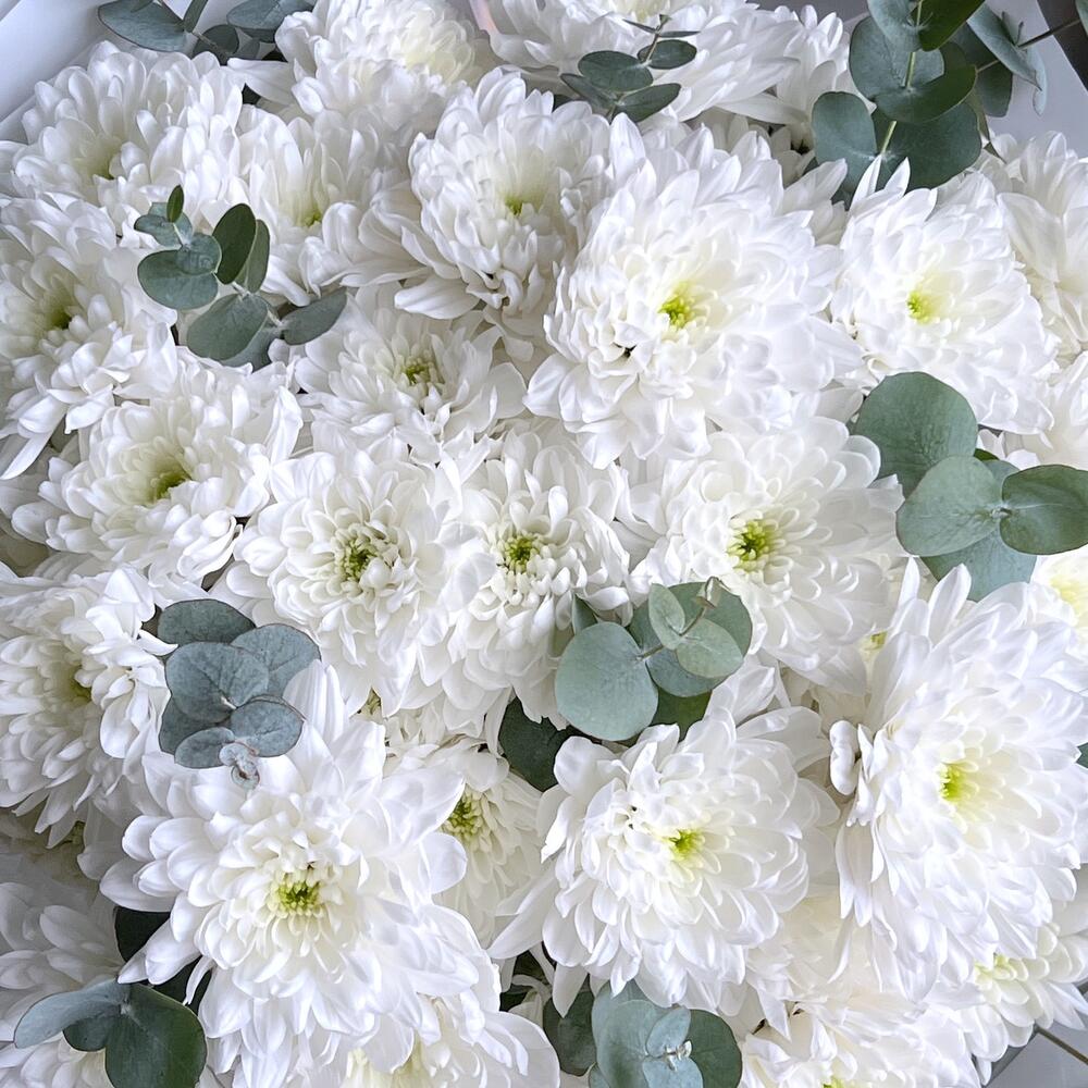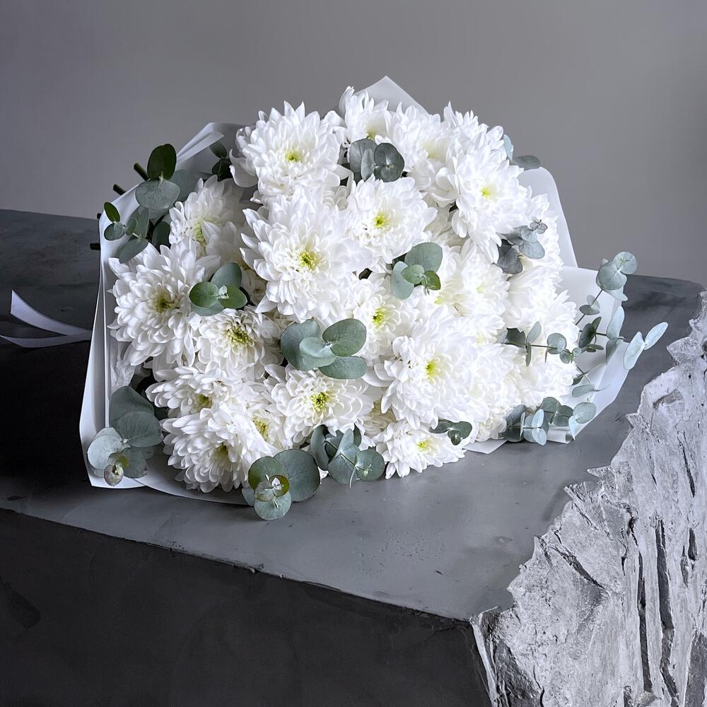 Букет белая хризантема и эвкалипт