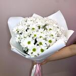 Хризантема кустовая - 7 шт. Лента атласная - 2 шт. Упаковка дизайнерская - 2 шт.