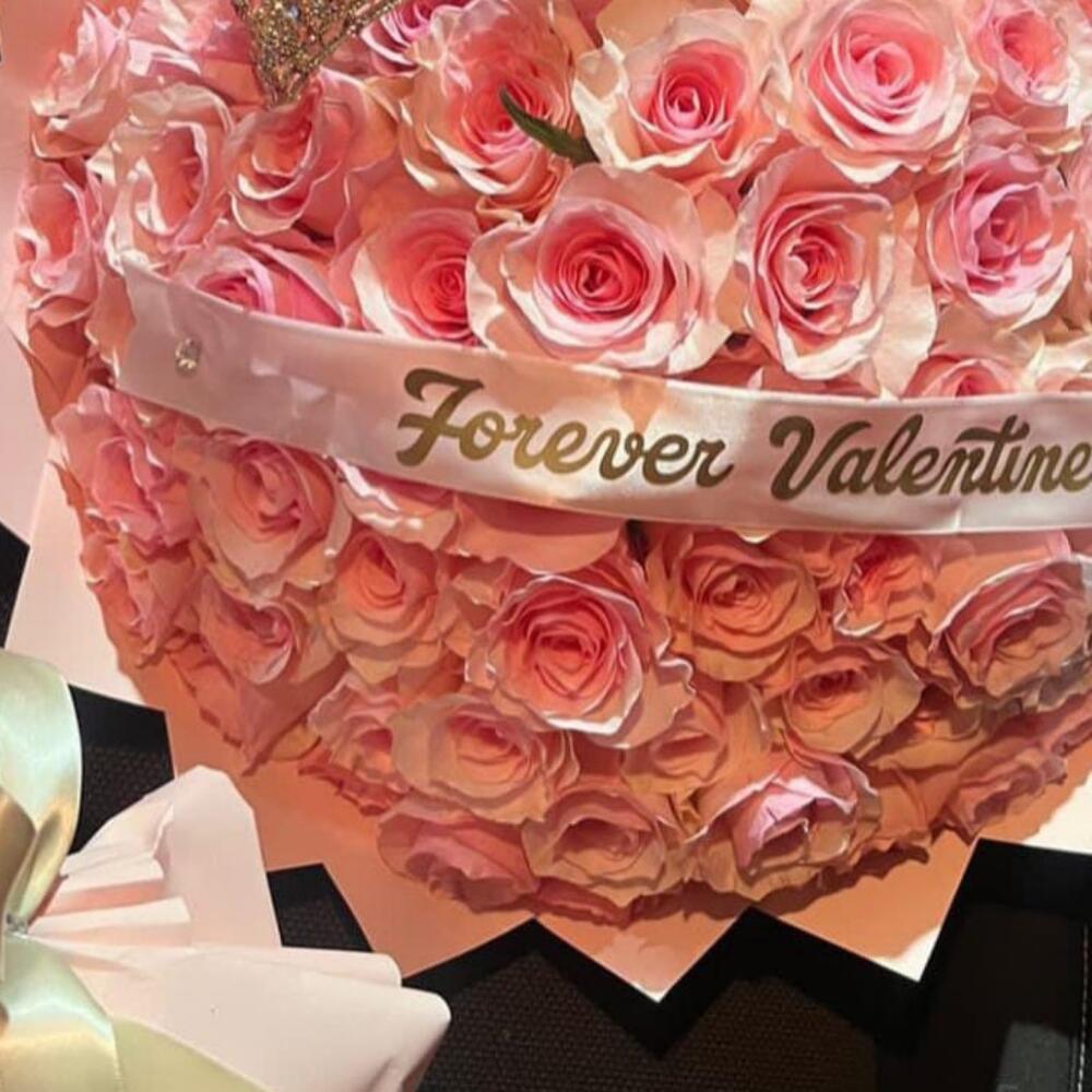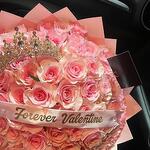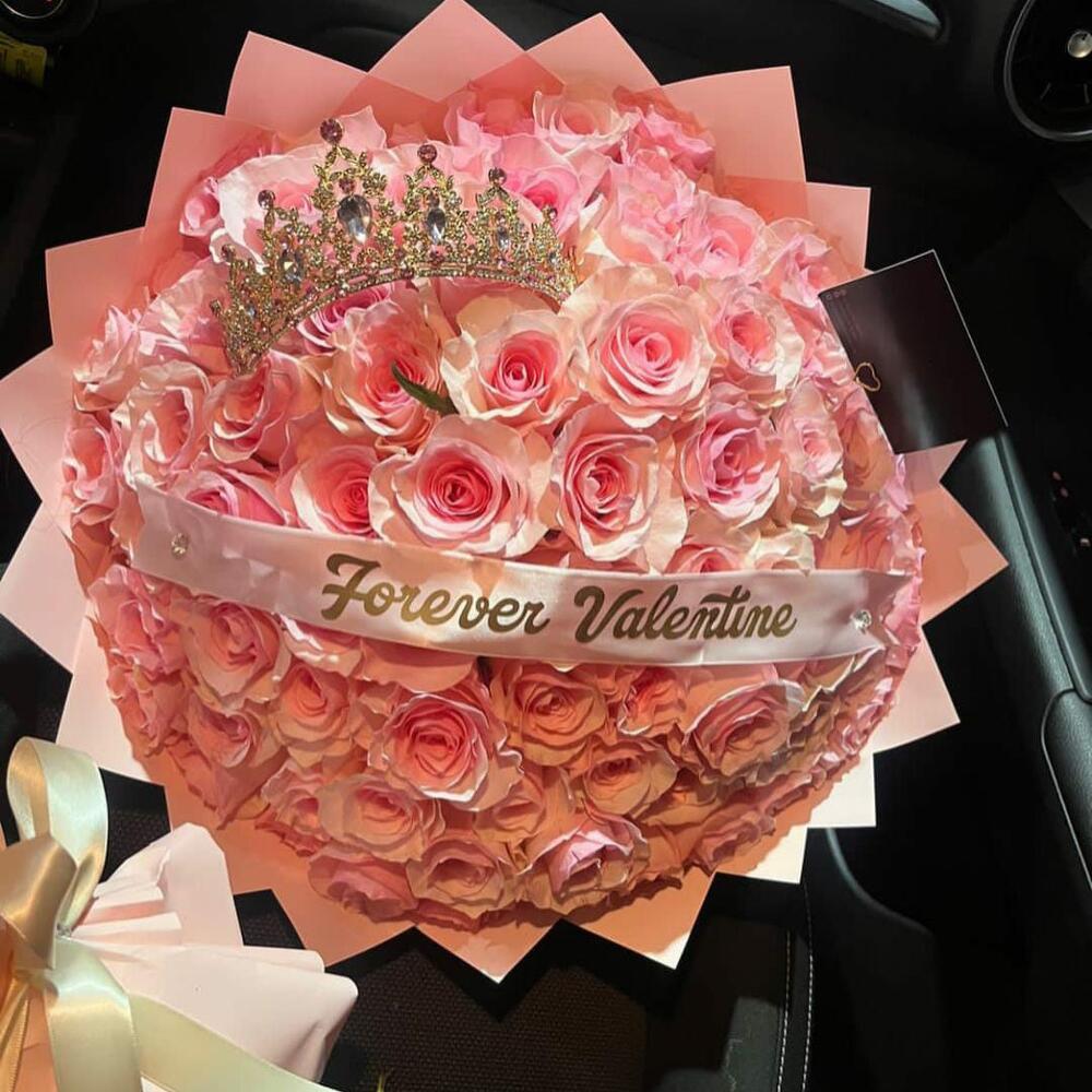Лента атласная - 1 шт. Упаковка дизайнерская - 1 шт. Открыточка с вашими пожеланиями - 1 шт. корона декор - 1 шт. розы - 65 шт. отличное настроение - 1000 шт.