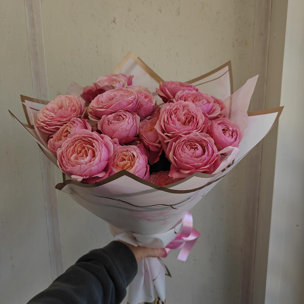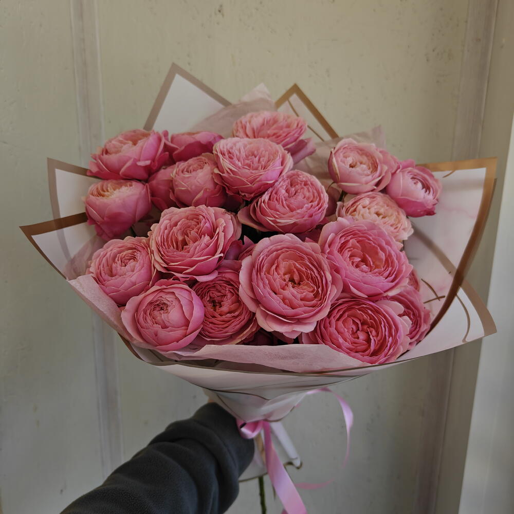 Роза кустовая пионовидная - 5 шт. Дизайнерская упаковка - 3 шт.