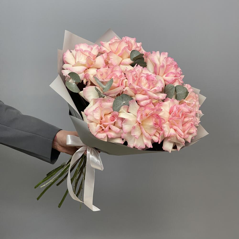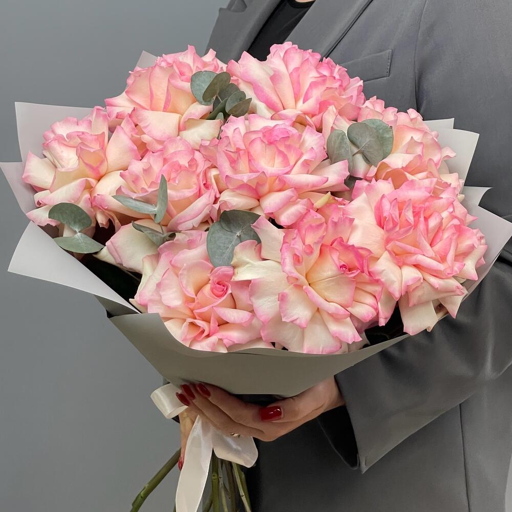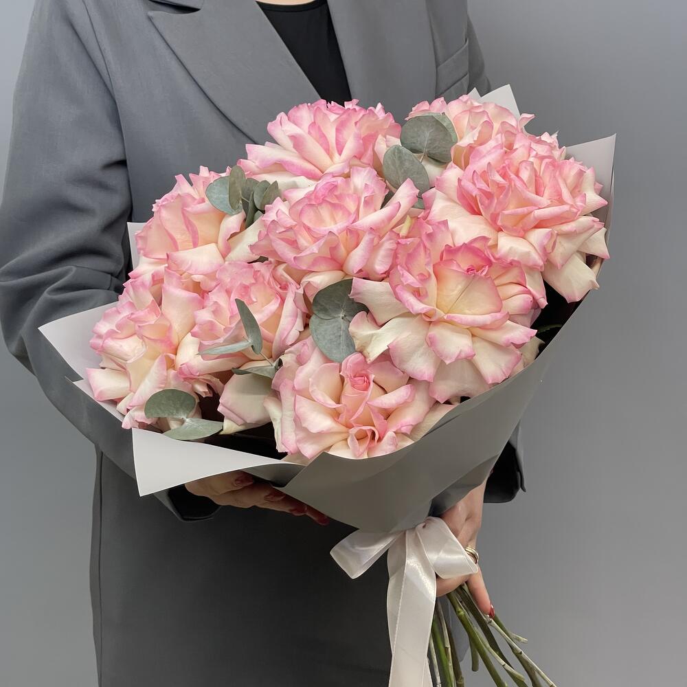 Эвкалипт - 5 шт. Роза Эквадор - 9 шт. Упаковка дизайнерская - 1 шт.