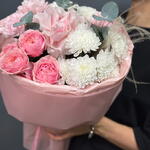 Букет Француская Роза , пионовидная Роза , хризантема и диантус