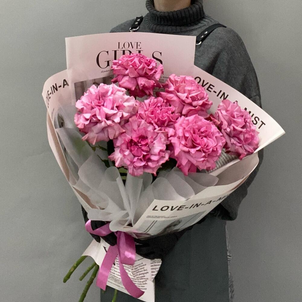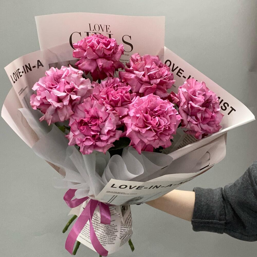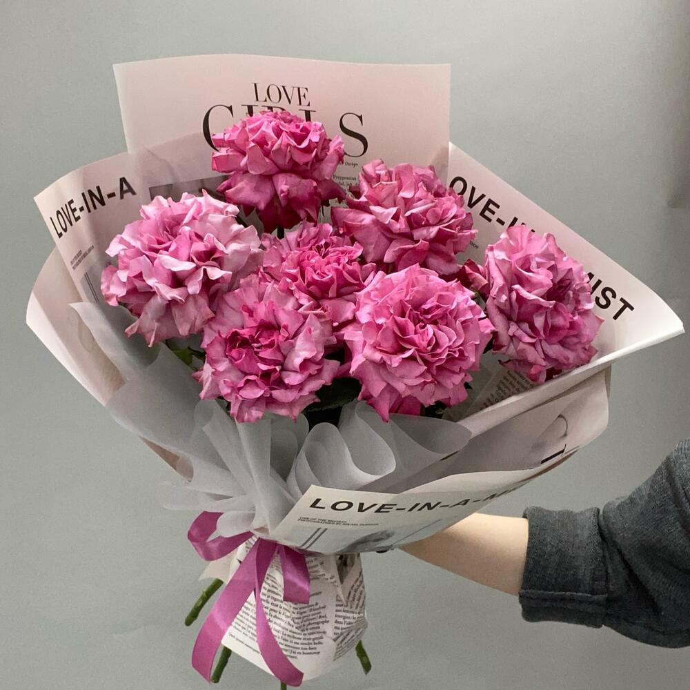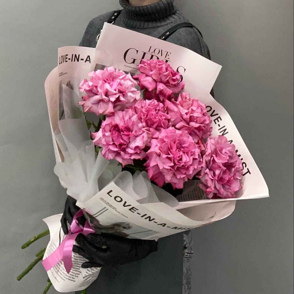 Роза пионовидная - 7 шт. Упаковка дизайнерская - 1 шт.