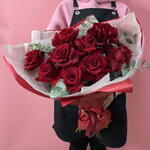 Букет роз с зеленью, 9 шт