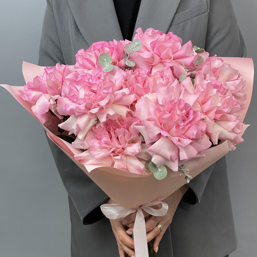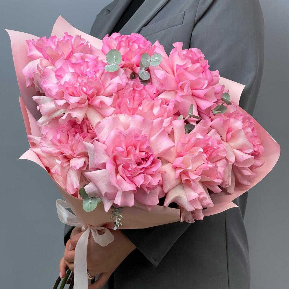 Роза Эквадор - 9 шт. Упаковка дизайнерская - 1 шт. Эвкалипт Микс - 7 шт.