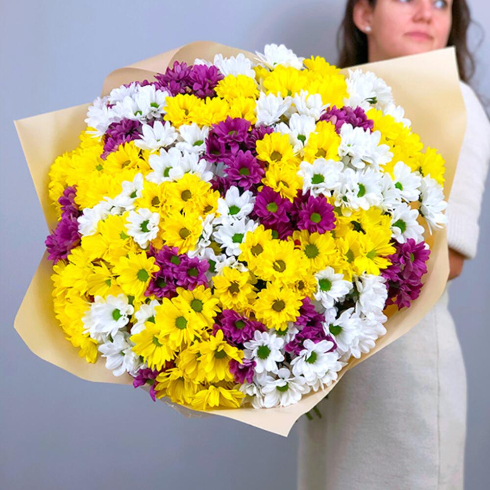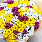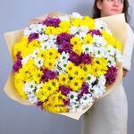 Хризантема кустовая Белая - 11 шт. Хризантема кустовая желтая - 12 шт. Упаковка дизайнерская - 1 шт. Хризантема кустовая Розовая - 12 шт.