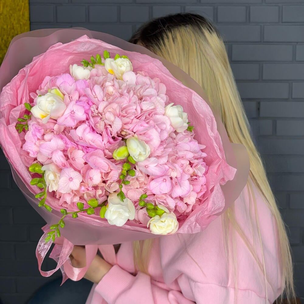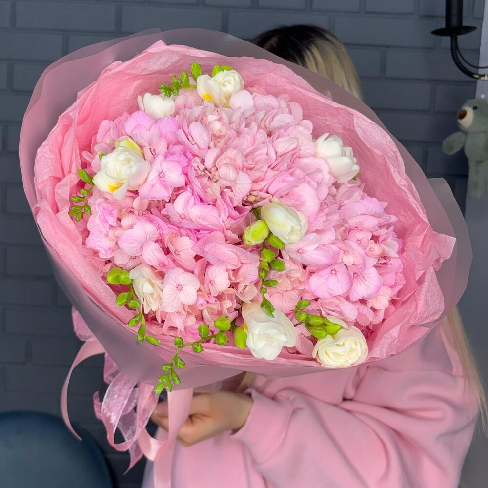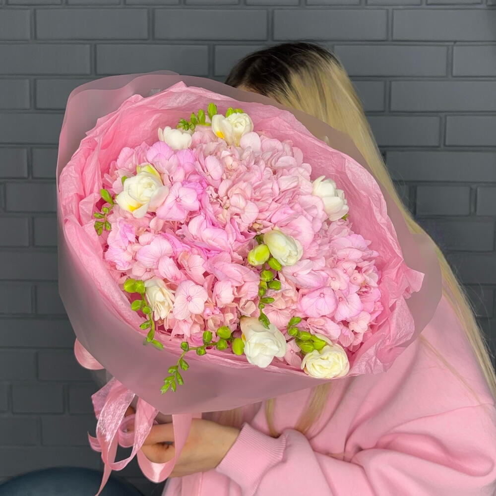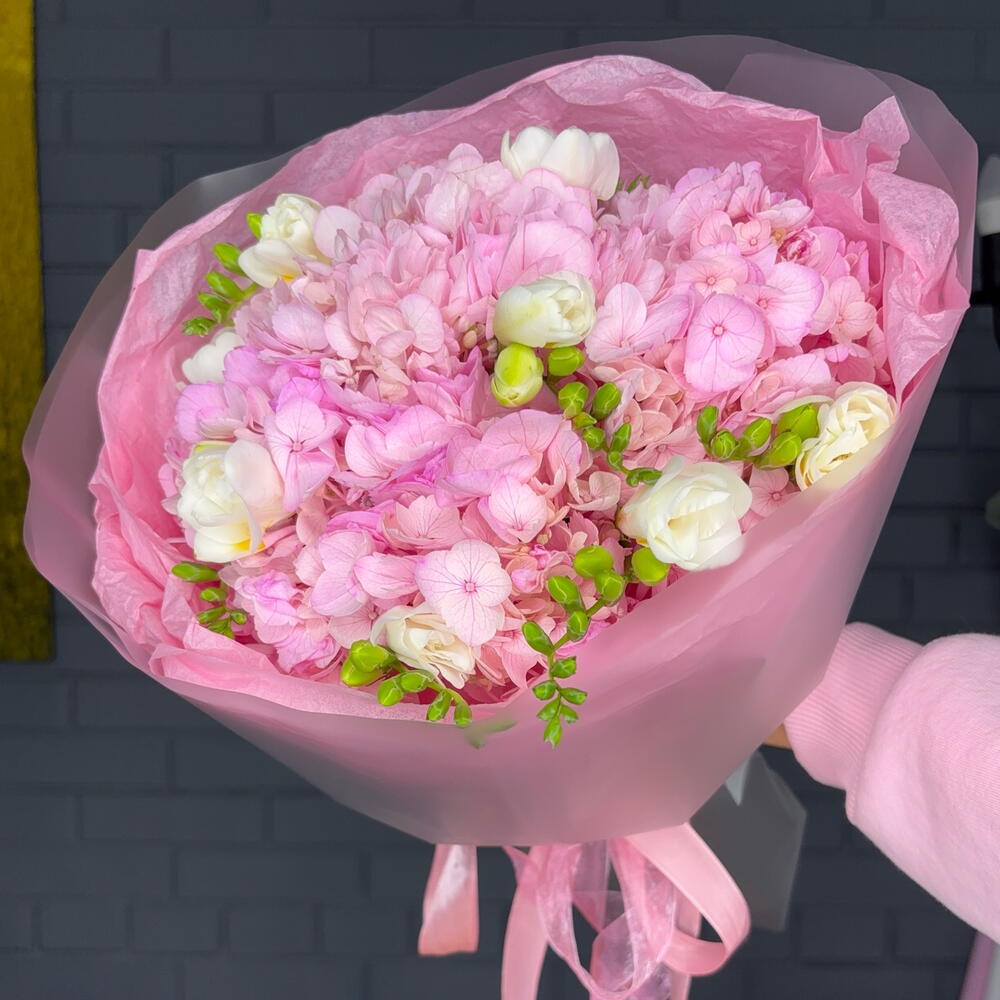 Букет гортензии и белая фрезия