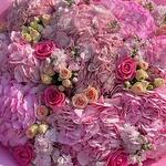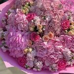 Букет гортензий, роз разного сорта и маттиолы