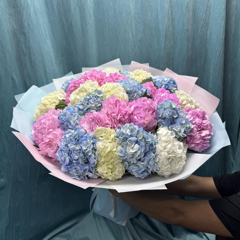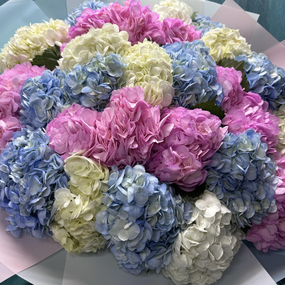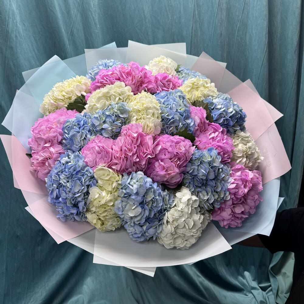 Гортензия - 31 шт. Лента атласная - 1 шт. Упаковка дизайнерская - 9 шт.