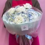 Нежнейший букет из гортензии с экстримом напоминает летнее голубое небо с легкими облачками