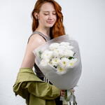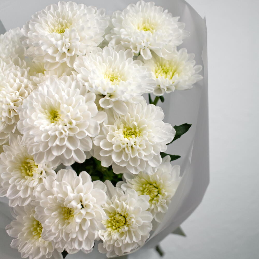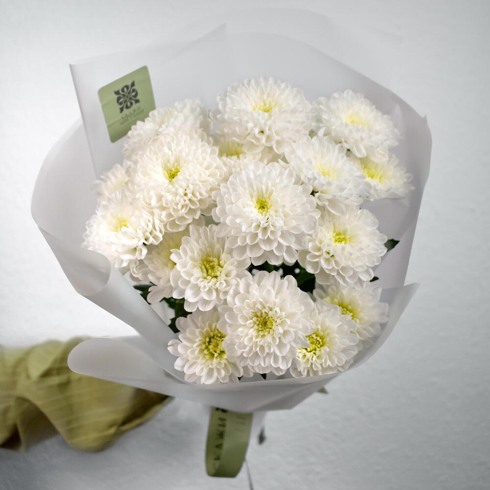 Светлый и воздушный букет из белых кустовых хризантем сорта Алтай. Цветы символизируют заботу, искренность и спокойствие. Подходит для поздравлений и приятных знаков внимания. Его дарят на день рождения, 8 марта, День учителя, маме, жене, бабушке, сестре, коллеге, на выписку из роддома, юбилей или без повода. Универсальный выбор для женщин и мужчин. В подарок — аквапакет и универсальная подкормка. Уход за букетом💧 Поставьте букет в вазу с прохладной водой, предварительно обрезав стебли под углом 45°. Меняйте воду ежедневно. Не ставьте рядом с фруктами и батареями. Хризантемы стойкие — сохраняют свежесть до 10 дней. Дополнительные товары🛍️ Дополните букет аксессуарами: — фирменная открытка — аква бокс — транспортировочная коробка — декоративная ваза — ароматы для дома — свечи и подсвечники — мягкая игрушка — фирменная открытка