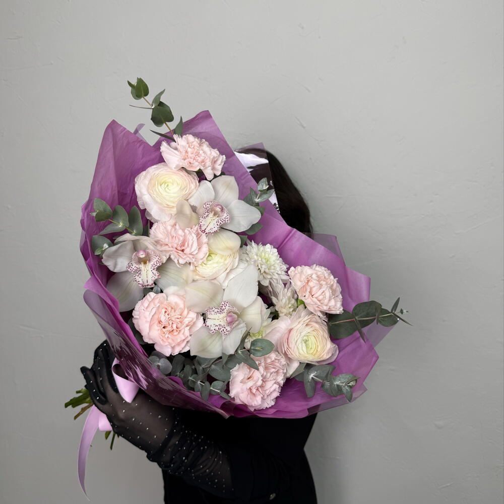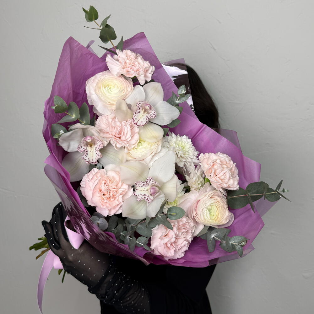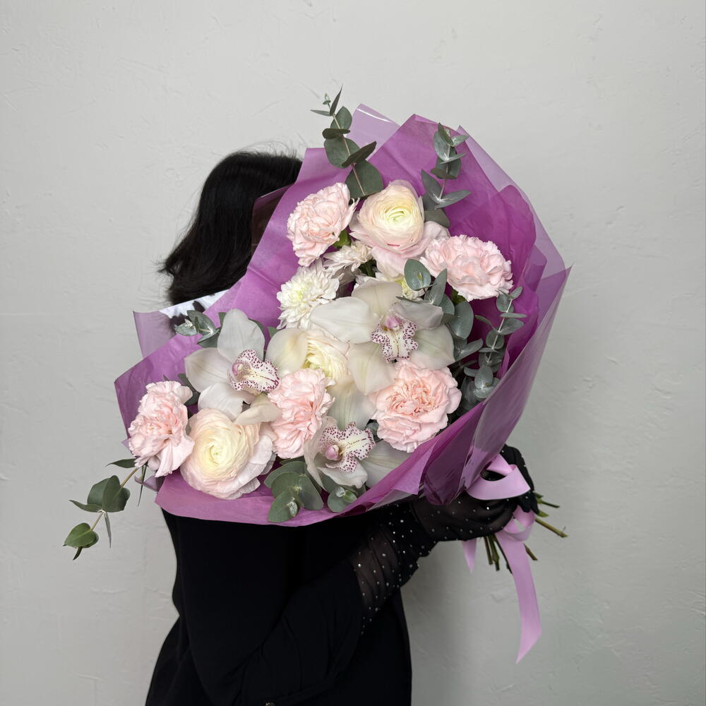 💕Букет и орхидеи, ранункулюс,эвкалипт и хризантема