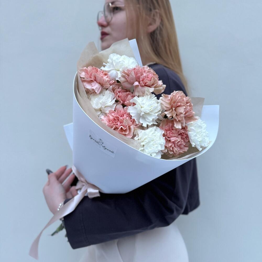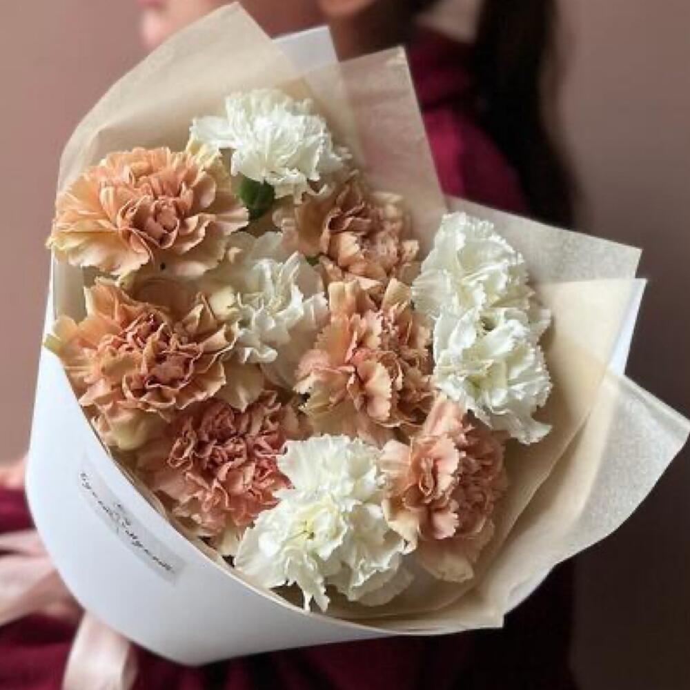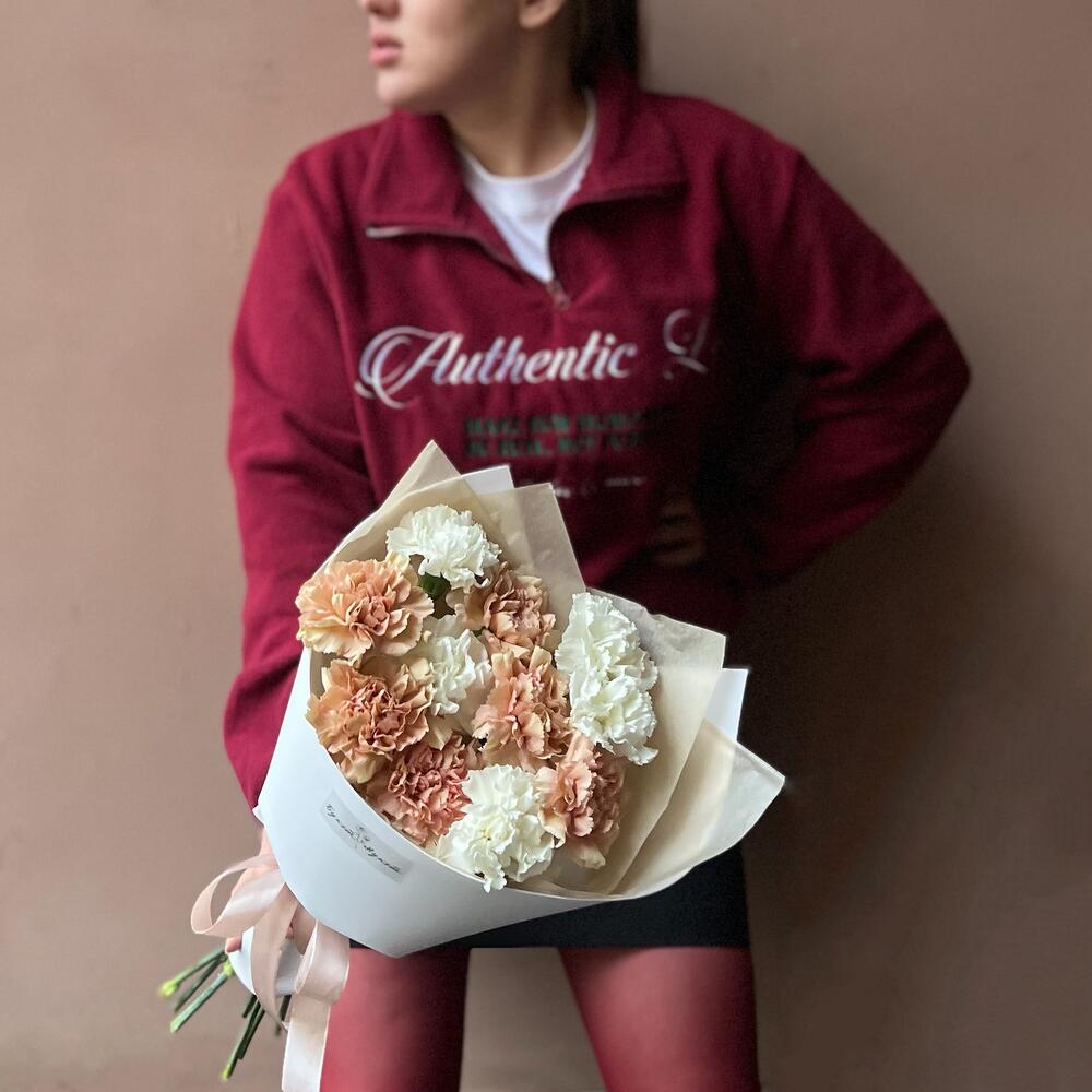 Букет «Ириска»(11 карамельно-белых диантусов)