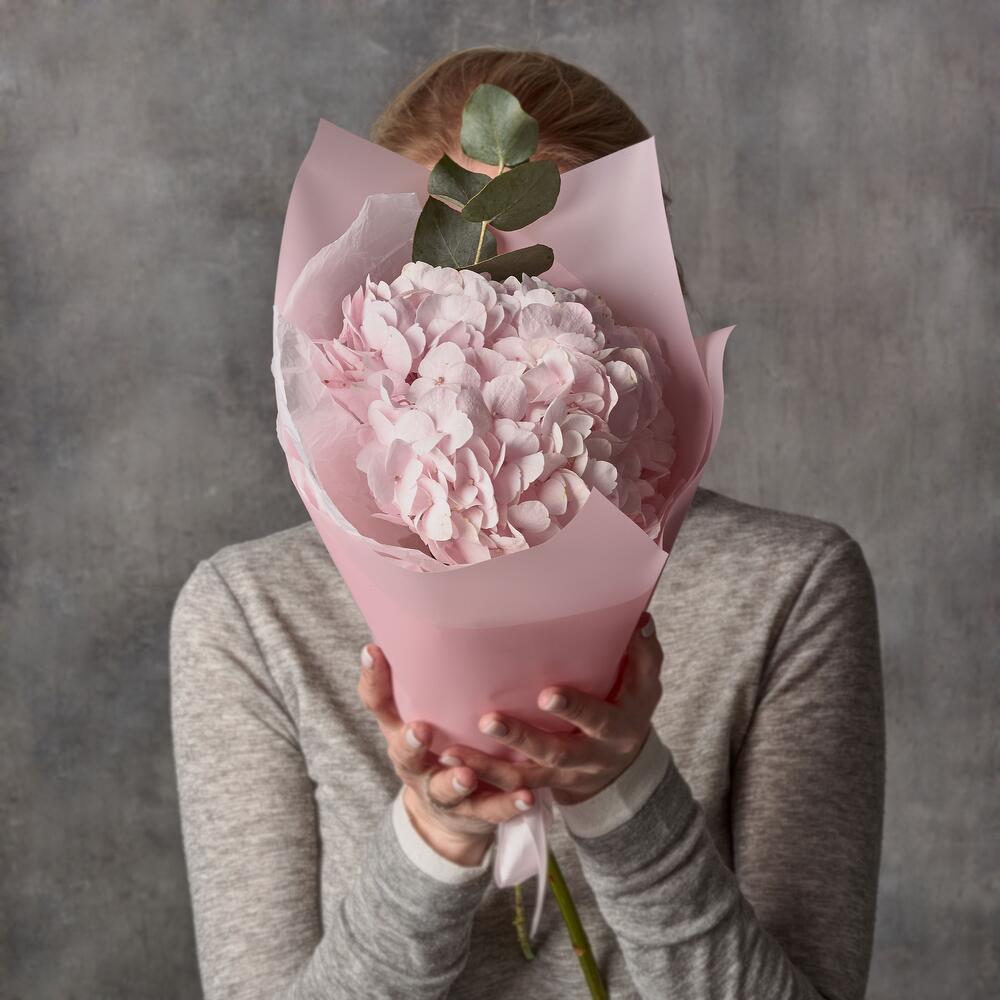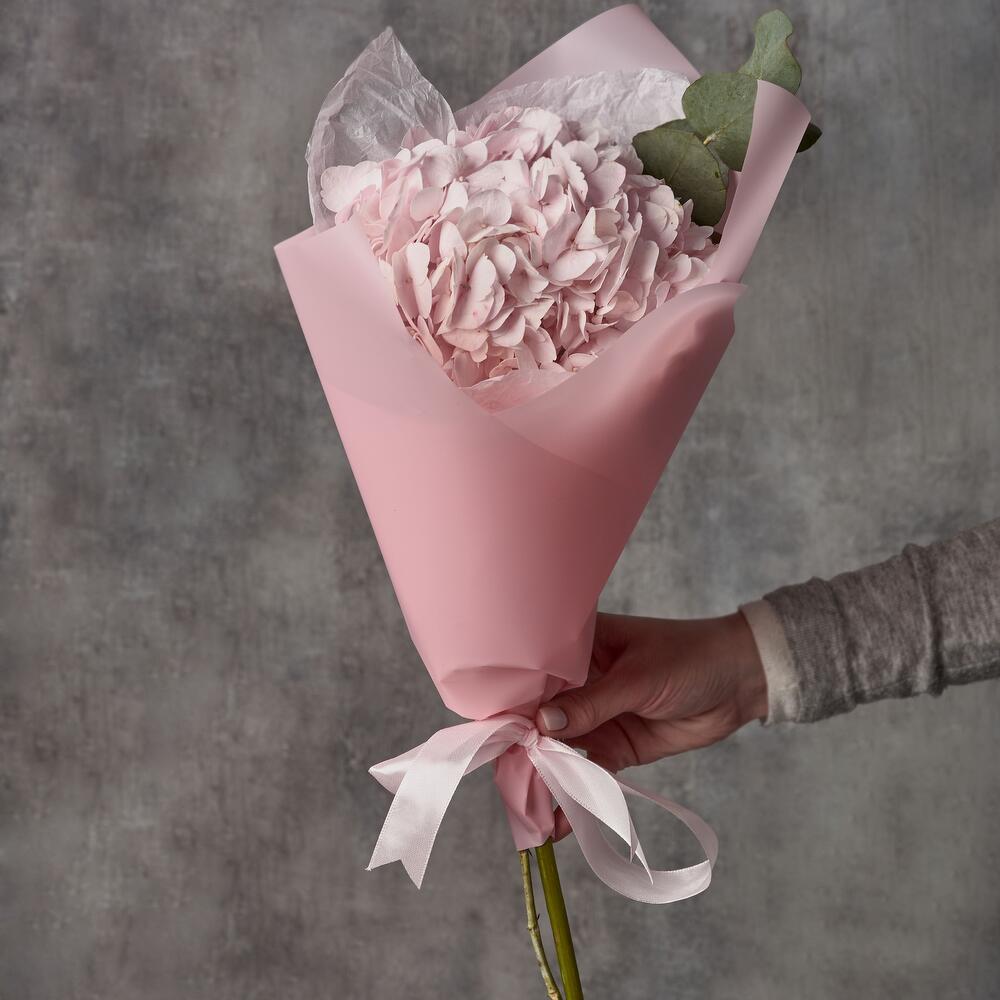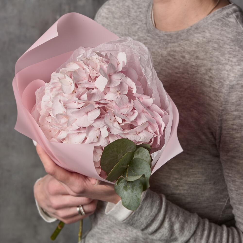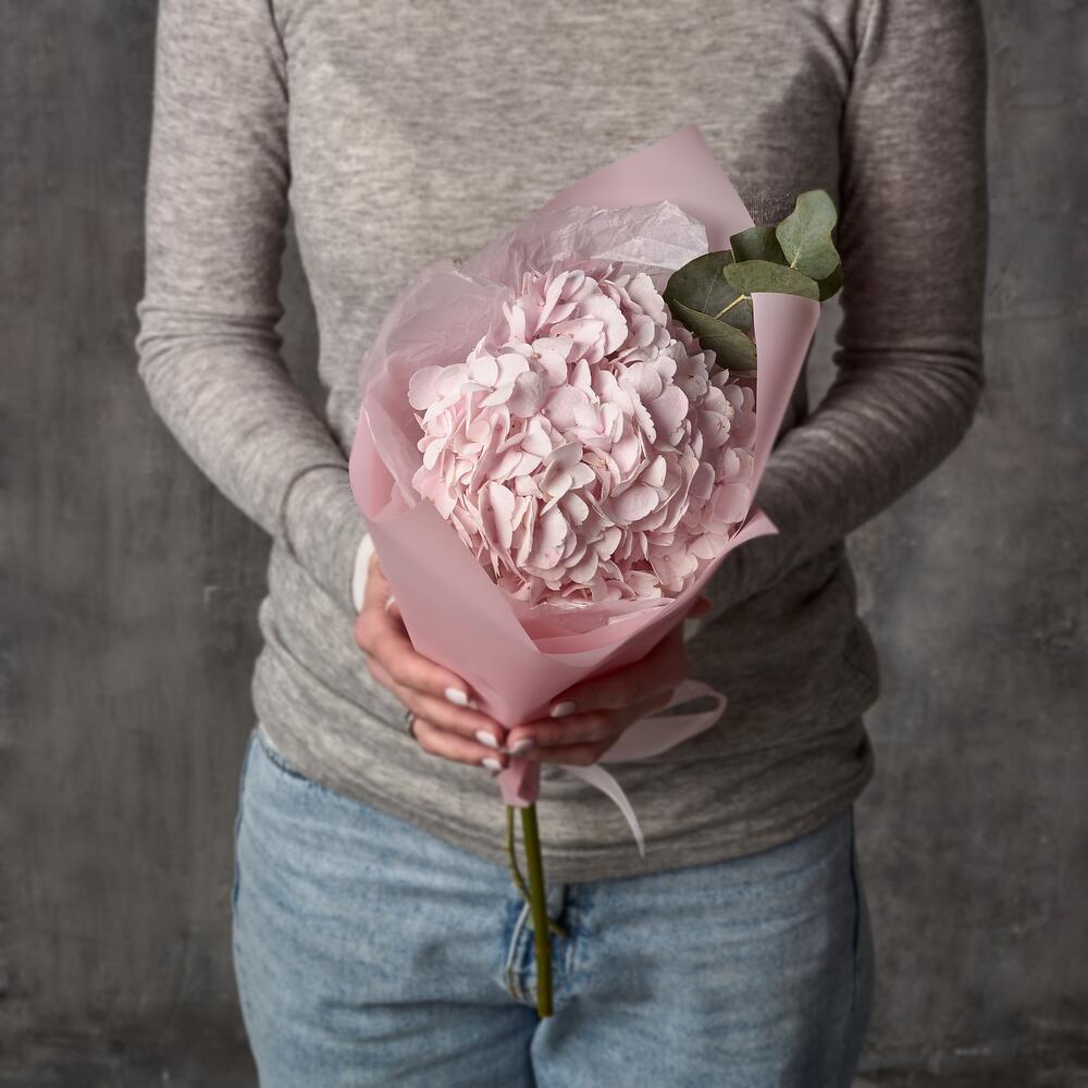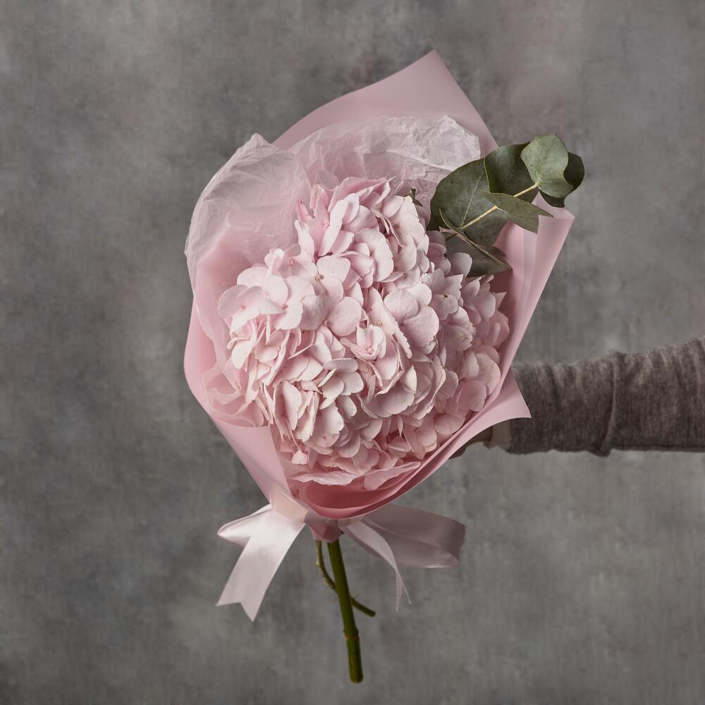 Розовая гортензия. Букет из 1 гортензии. Детский букет. Букет для ребенка