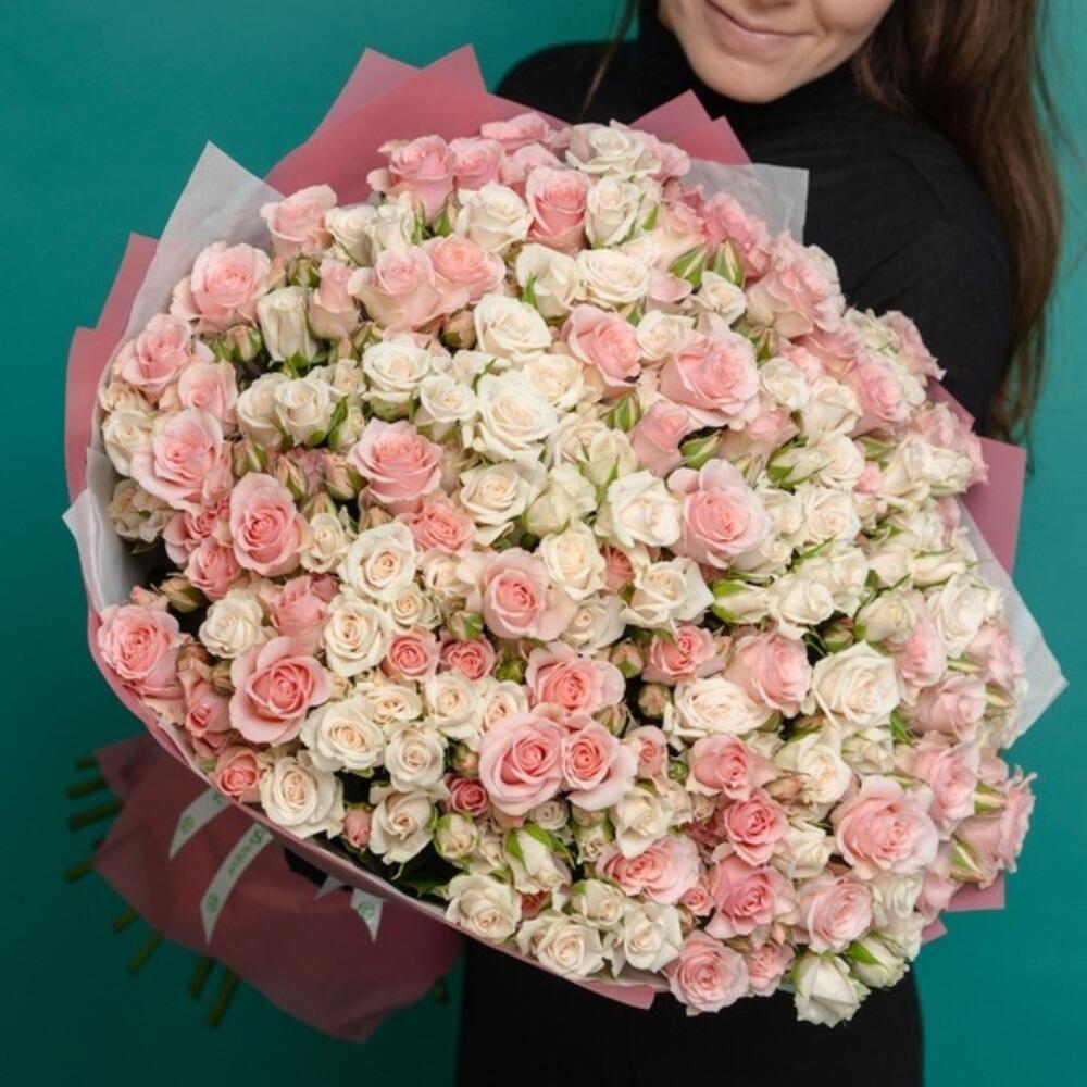 Букет из кустовой розы микс 101 штука 50 см Голландия с дизайнерской упаковкой