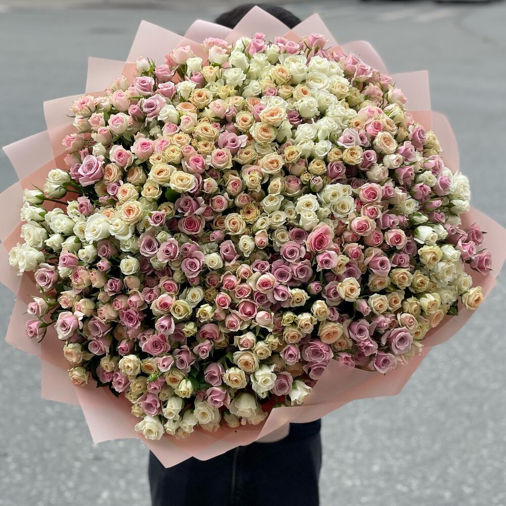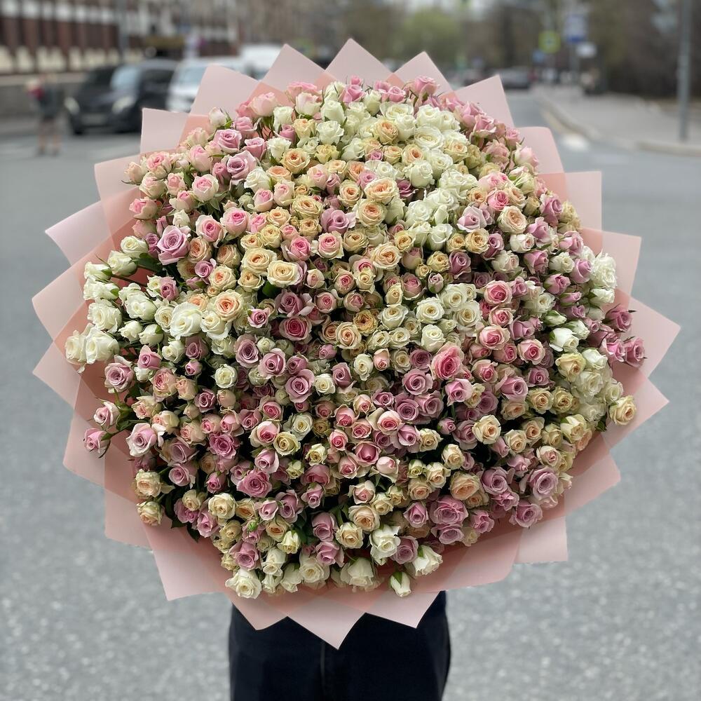 Атласная лента - 1 шт. Дизайнерская упаковка - 1 шт. роза кустовая 70 см премиум - 101 шт.