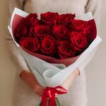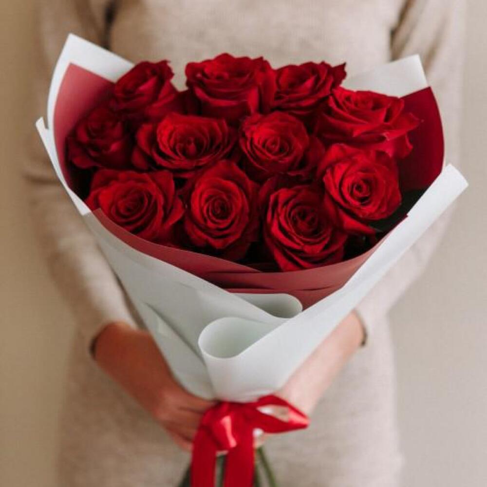 Роза красная 60 см - 11 шт. Крафт упаковка - 1 шт.