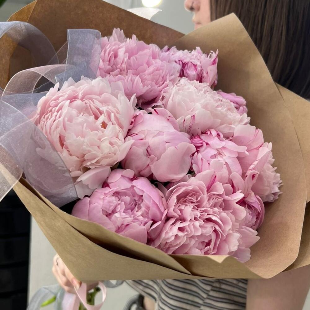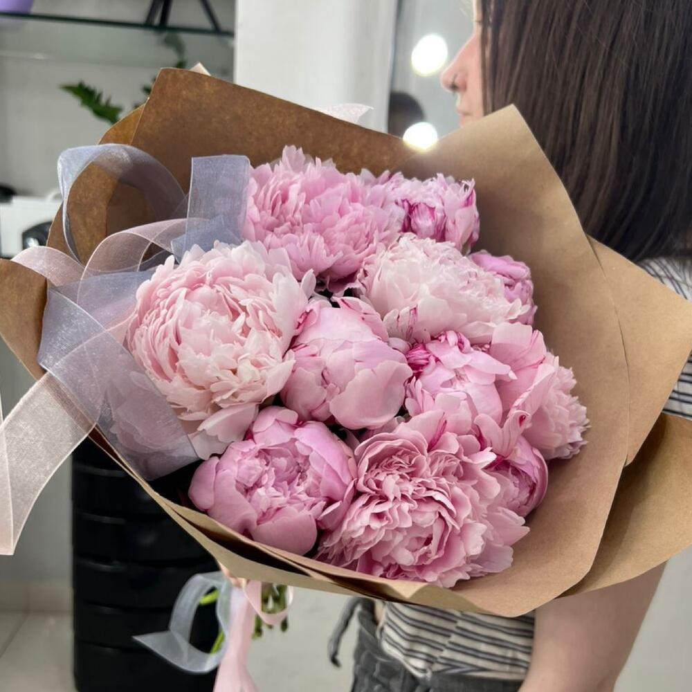 Пион - 11 шт. Лента атласная - 1 шт. Упаковка дизайнерская - 1 шт.