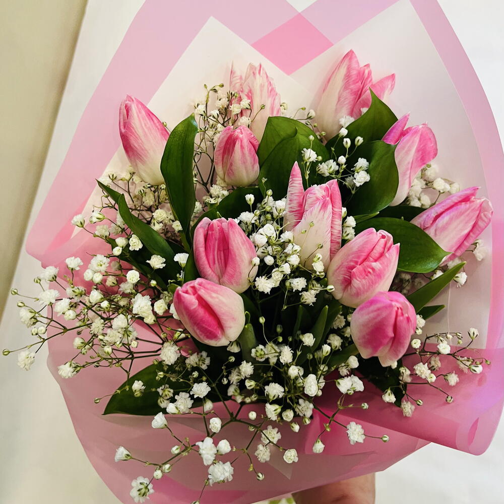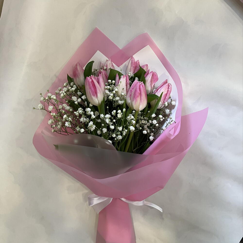 Гипсофила - 4 шт. Тюльпан - 11 шт.