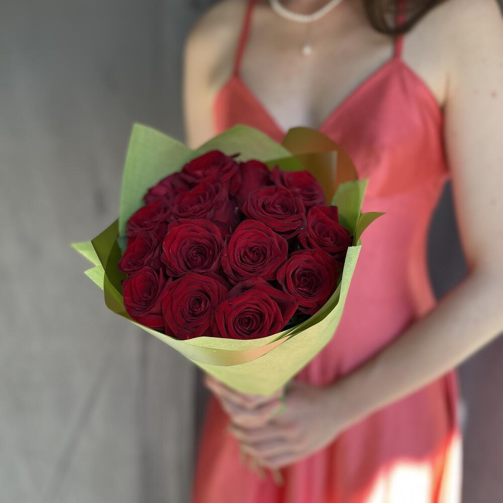 Роза красная - 15 шт. Упаковка дизайнерская - 1 шт.