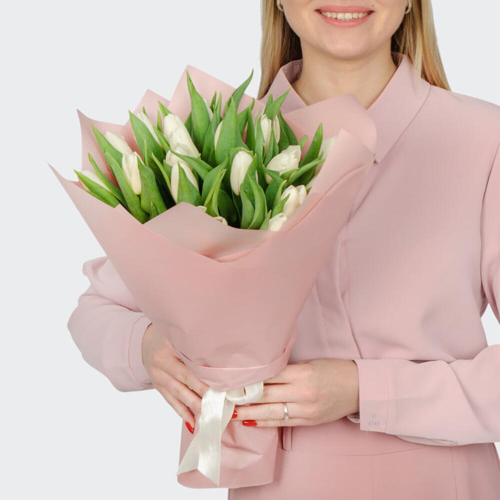 Букет из 21 белого тюльпана