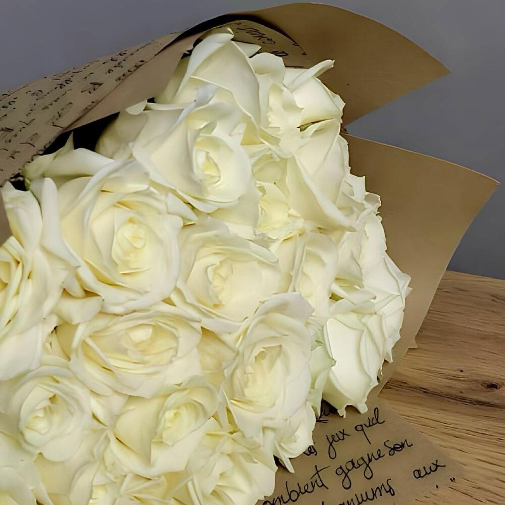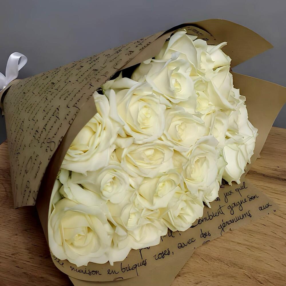 Букет из 21 белой розы 40 см. За счет невероятной работы наших флористов, букет подходят для любого повода, чтобы порадовать вашу девушку, жену, маму, коллегу, бабушку, сестру или просто знакомую. Не упускайте возможность сделать приятно своим близким.