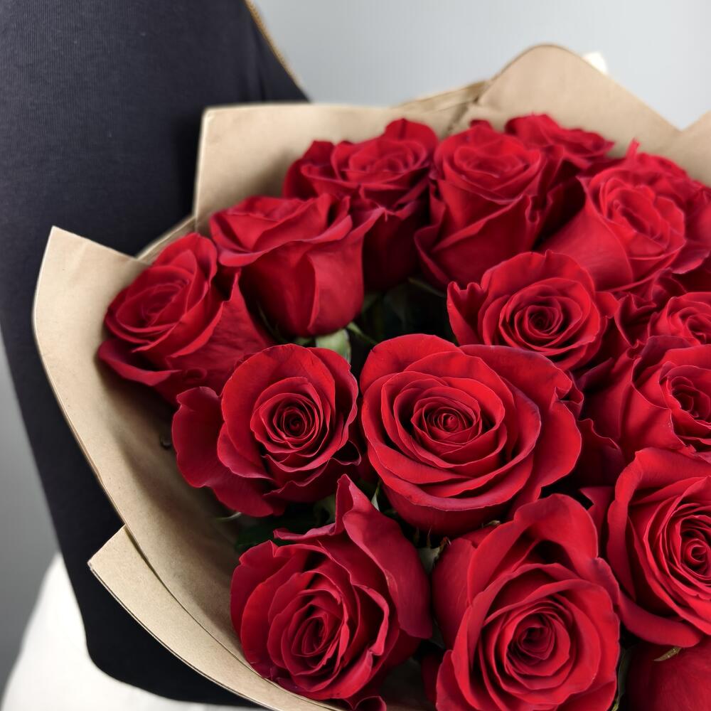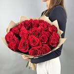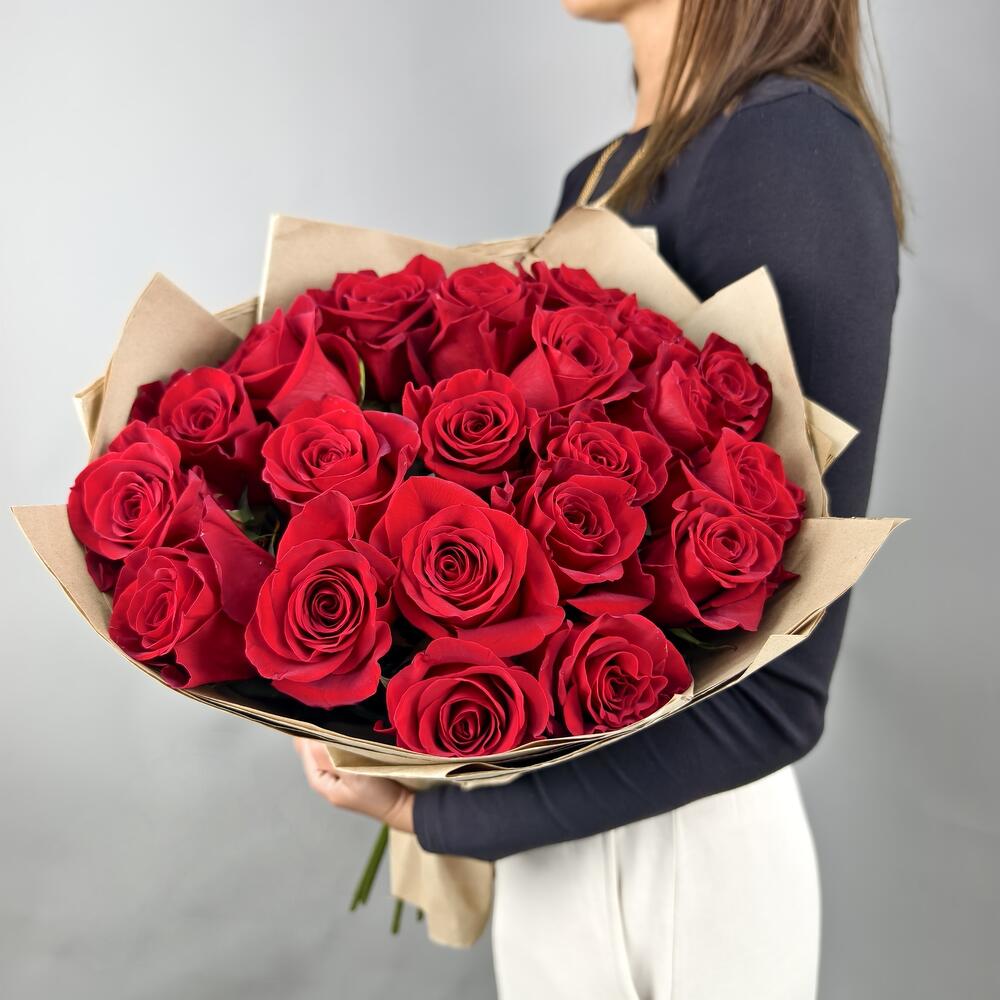 Букет из 21 красной розы в крафтовой упаковке Арт.030