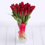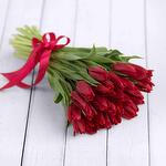Атласная лента - 1 шт. букет из 25 красных тюльпан стронг лав - 25 шт.