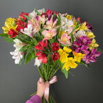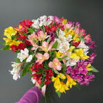 Букет из 25 разноцветных альстрамерий под атласную ленту