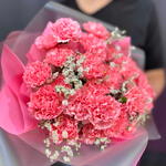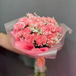 Нежный и воздушный букет из 25 розовых диантусов, окружённых облачками белого лимониума, словно шепчет самые искренние чувства. Розовые цветы с бархатистыми лепестками передают трепетную нежность и восхищение, а белый лимониум добавляет легкости, чистоты и долговечности — как символ сохраняющихся в памяти моментов. Этот букет идеально подойдёт для первого признания, тёплого поздравления или знака внимания тому, кто заслуживает чего-то особенно деликатного и прекрасного.