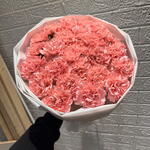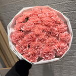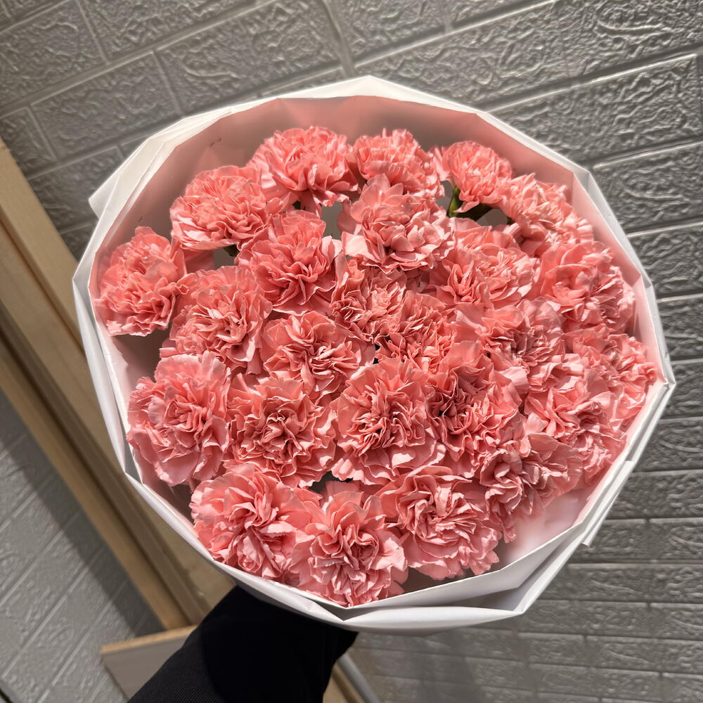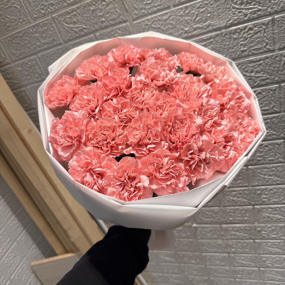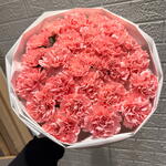 Лента атласная - 1 шт. упаковка дизайнерская даойная - 4 шт. гвоздики сортовые диантус розовые - 25 шт.