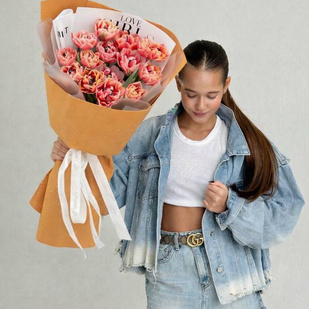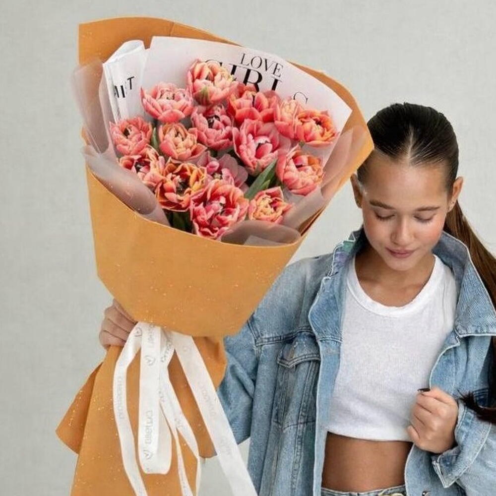 Букет из 25 тюльпана "Оранжевый персик"