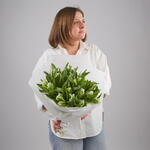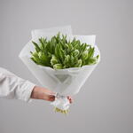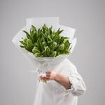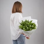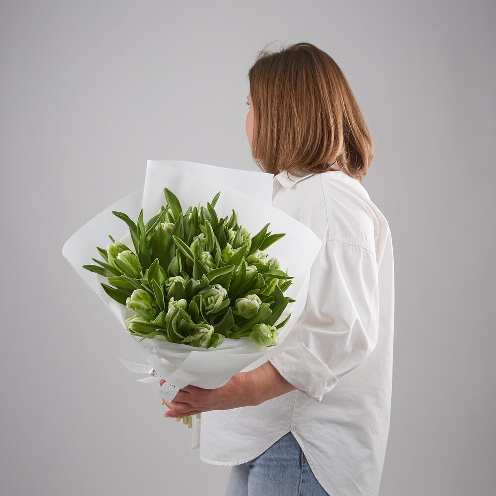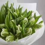 Букет из 25 бело-зеленых тюльпанов сорта Пэррот.