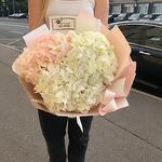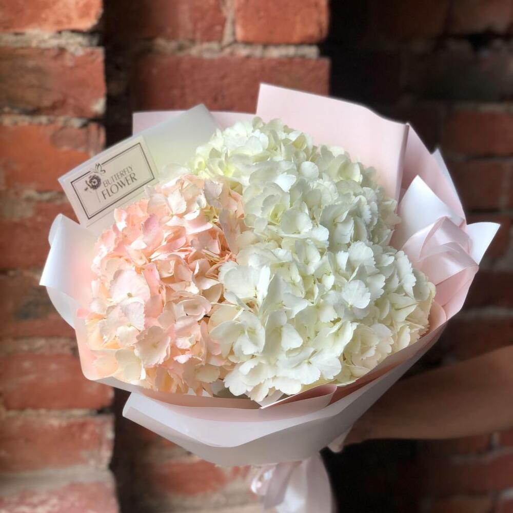 Букет из 3 белых и розовых гортензий в стильной упаковке "Свияш"