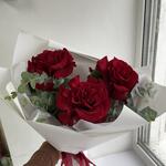 Букет из 3 бордовых французских роз с эвкалиптом — элегантная композиция, которая подойдёт для выражения глубоких эмоций: любви, восхищения или благодарности. Французские розы отличаются пышными бутонами и насыщенным цветом, а эвкалипт добавляет свежести и объёма. Хорошего настроения и удачных приобретений!