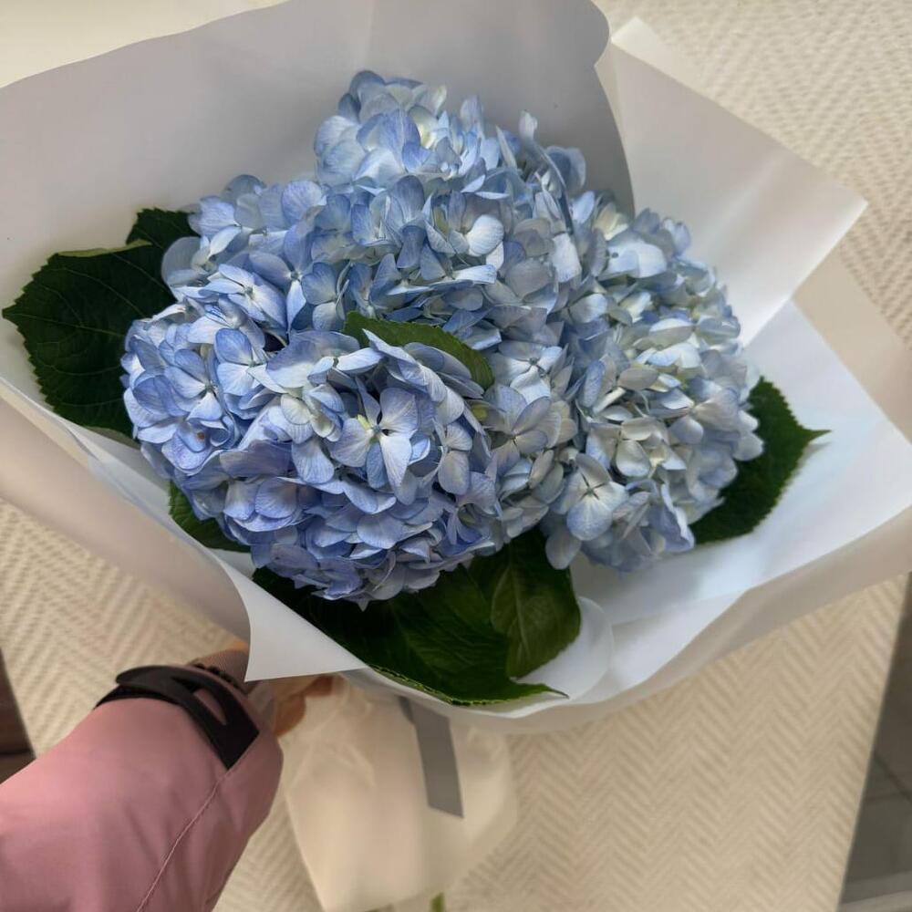 Гортензия - 3 шт. Лента атласная - 1 шт. Открытка - 1 шт. Упаковка дизайнерская - 1 шт. отличное настроение - 1000 шт.