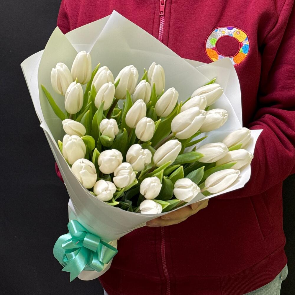 Тюльпан - 31 шт. Лента атласная - 1 шт. Пленка - 4 шт.