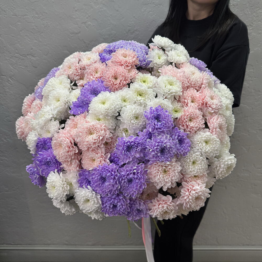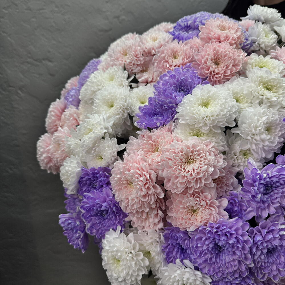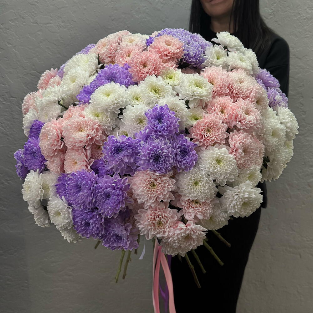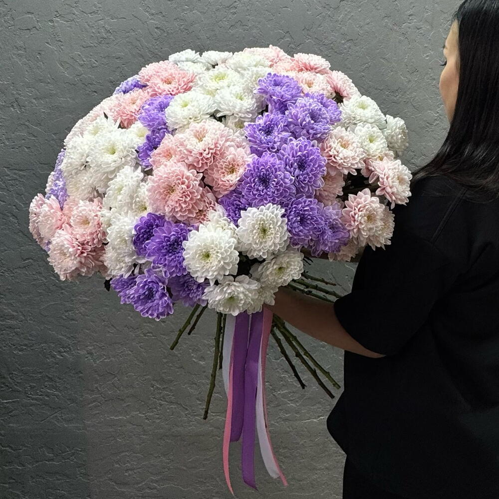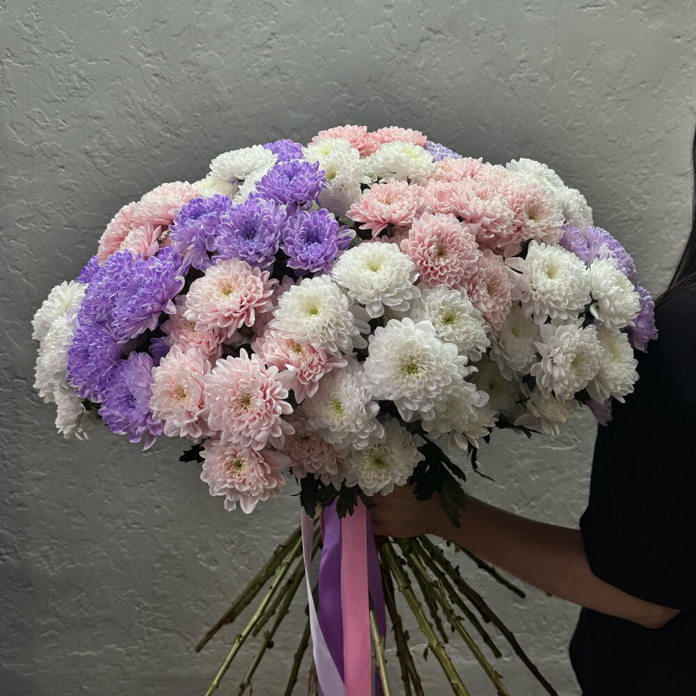 Хризантема кустовая - 45 шт. Лента атласная - 3 шт.