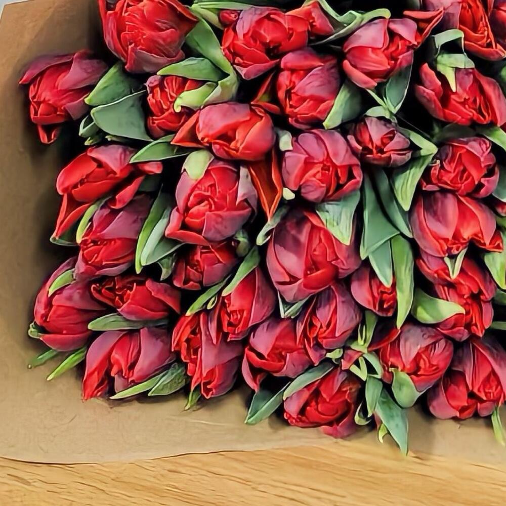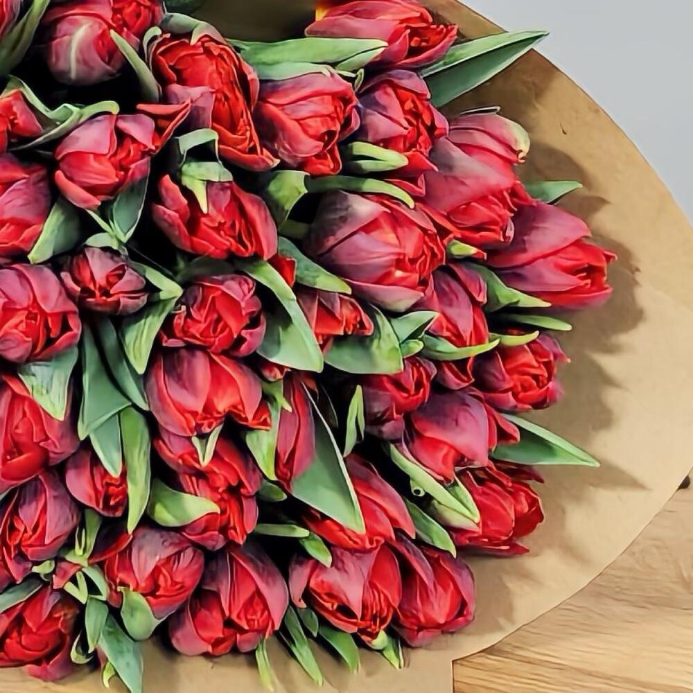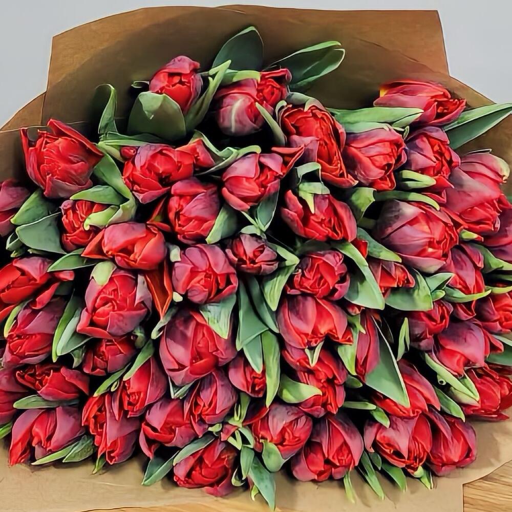Букет из 49 красных тюльпанов в крафте. За счет невероятной работы наших флористов, букет подходят для любого повода, чтобы порадовать вашу девушку, жену, маму, коллегу, бабушку, сестру или просто знакомую. Не упускайте возможность сделать приятно своим близким.