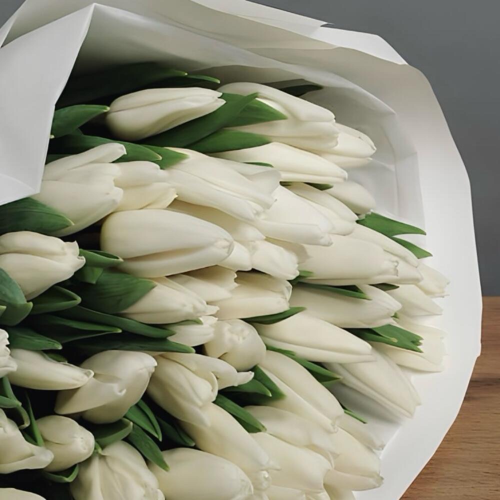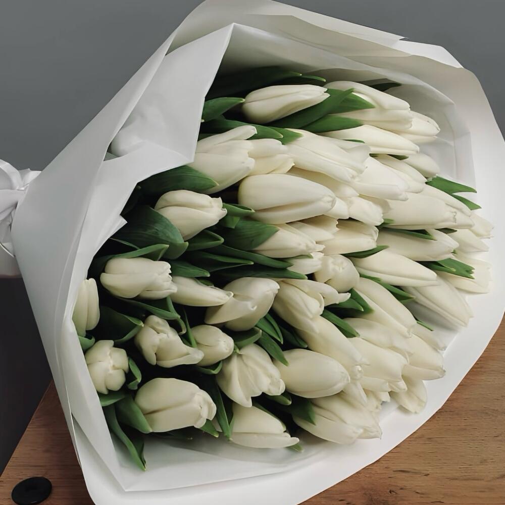 Букет из 49 белых тюльпанов в белой упаковке. За счет невероятной работы наших флористов, букет подходят для любого повода, чтобы порадовать вашу девушку, жену, маму, коллегу, бабушку, сестру или просто знакомую. Не упускайте возможность сделать приятно своим близким.