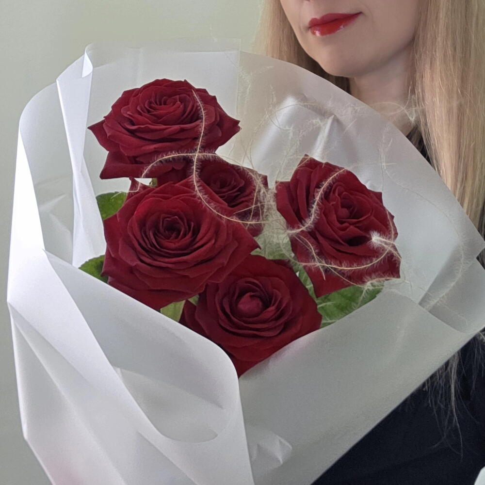 Букет из 5 красных роз "Лавина Любви"