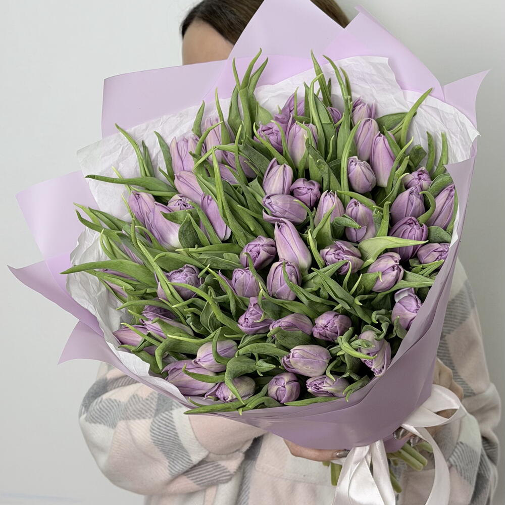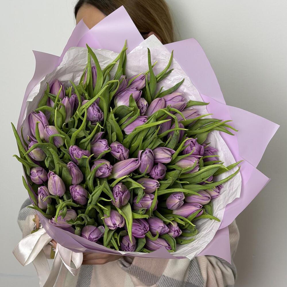 Букет из 50 пионовидных тюльпанов сорта Дабл Прайс