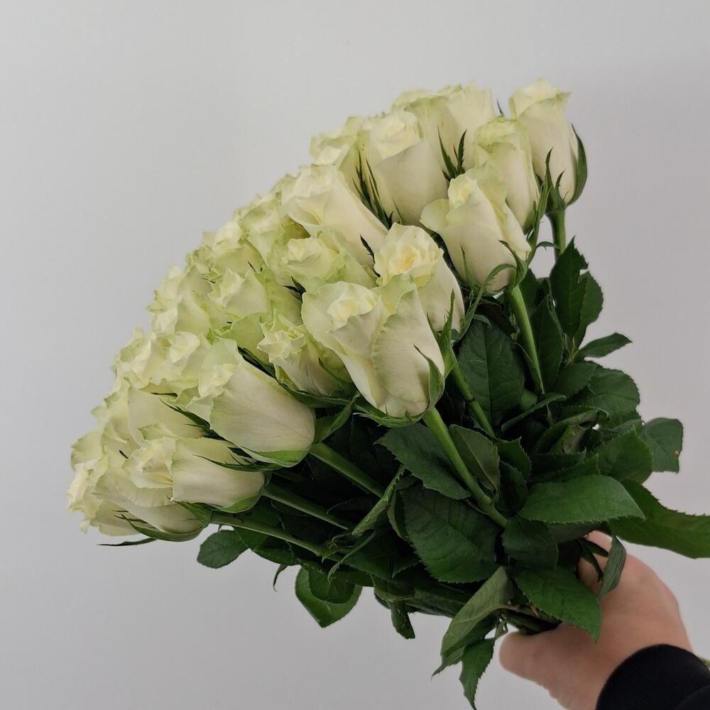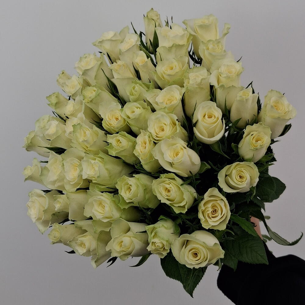 Букет из 51 белой розы под атласную ленту