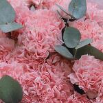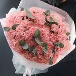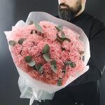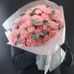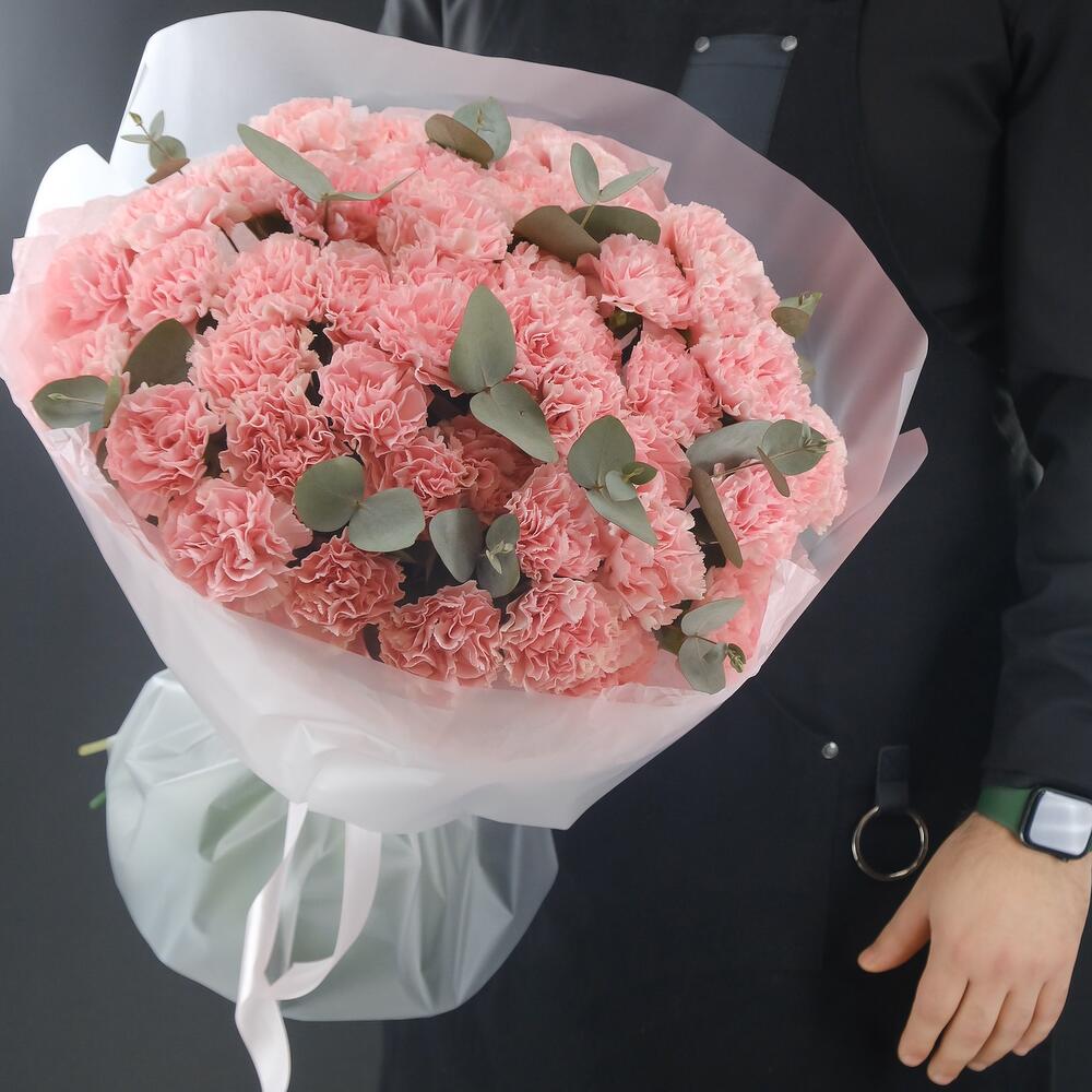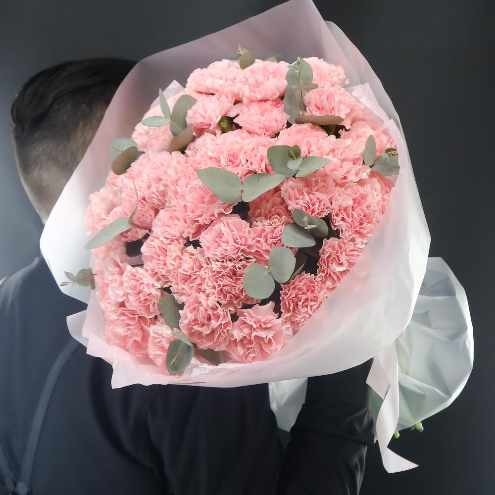 Букет из 51 нежно-розового диантуса с эвкалиптом AB310