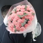 Пышный монобукет из нежных диантусов сорта Джоди в розовом оттенке — это воплощение женственности и изящества. Пышные бутоны создают ощущение лёгкости и воздушности, а их пастельный цвет добавляет романтичности и элегантности. Эвкалипт придаёт композиции свежесть и оригинальность, делая её более интересной и запоминающейся. Букет станет прекрасным подарком для любого случая — он подойдёт как для романтического свидания, так и для поздравления на день рождения или юбилей. Нежные оттенки цветов помогут выразить самые тёплые чувства