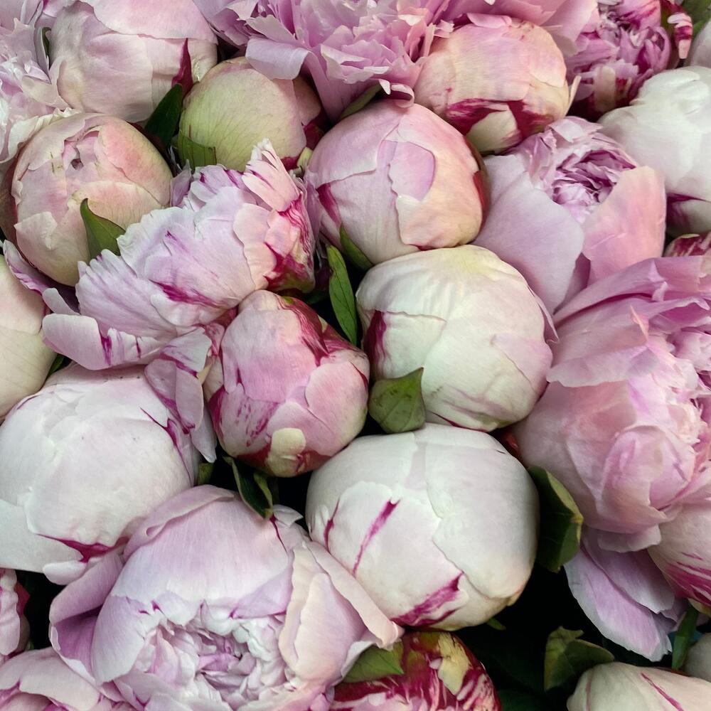 Лента атласная - 1 шт. Пион Сара Бернар - 51 шт. Упаковка дизайнерская - 5 шт.