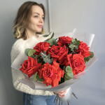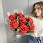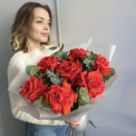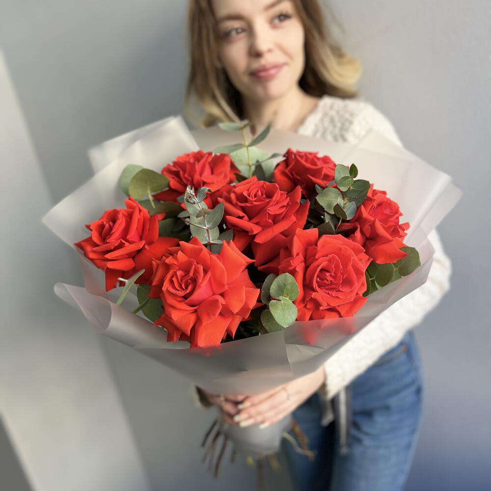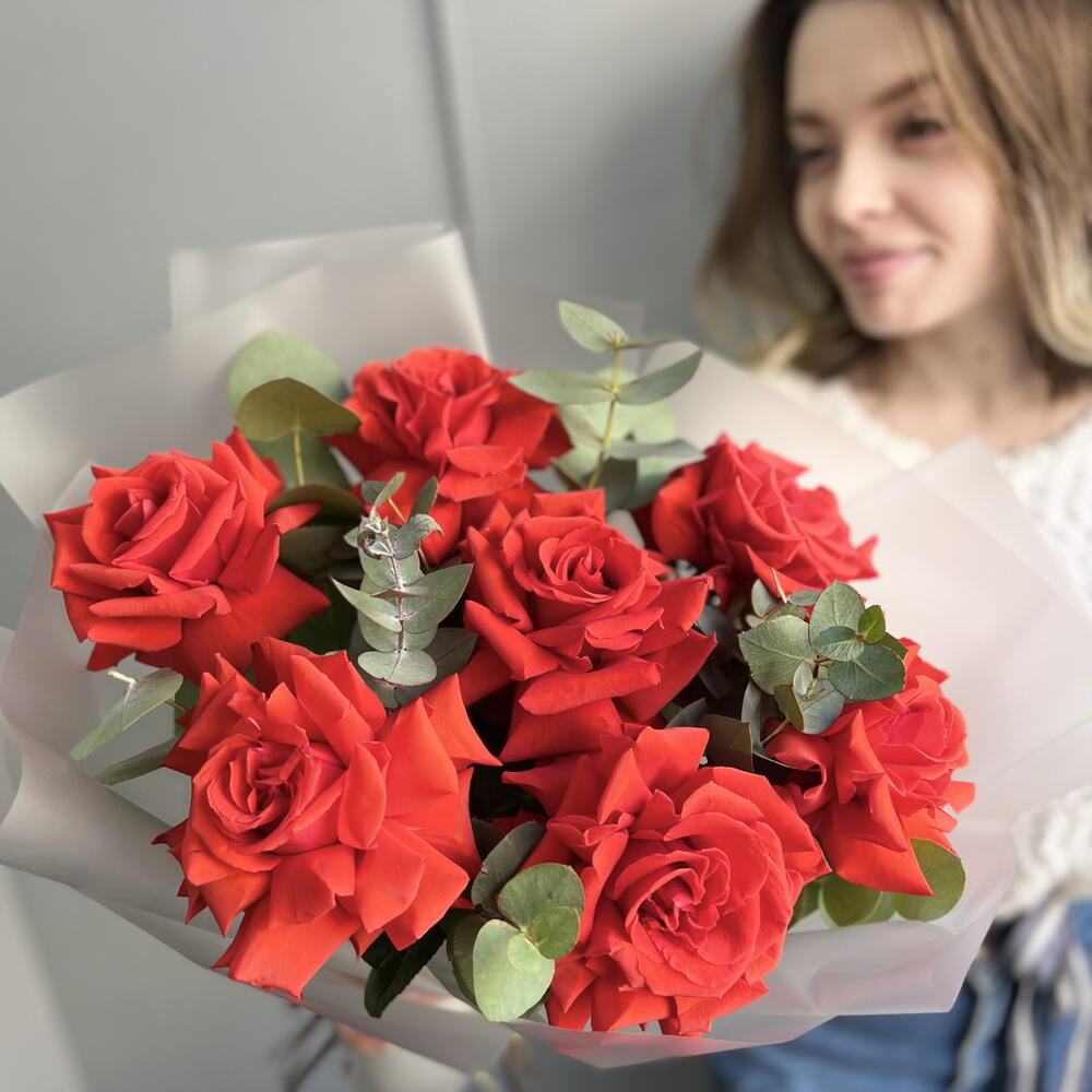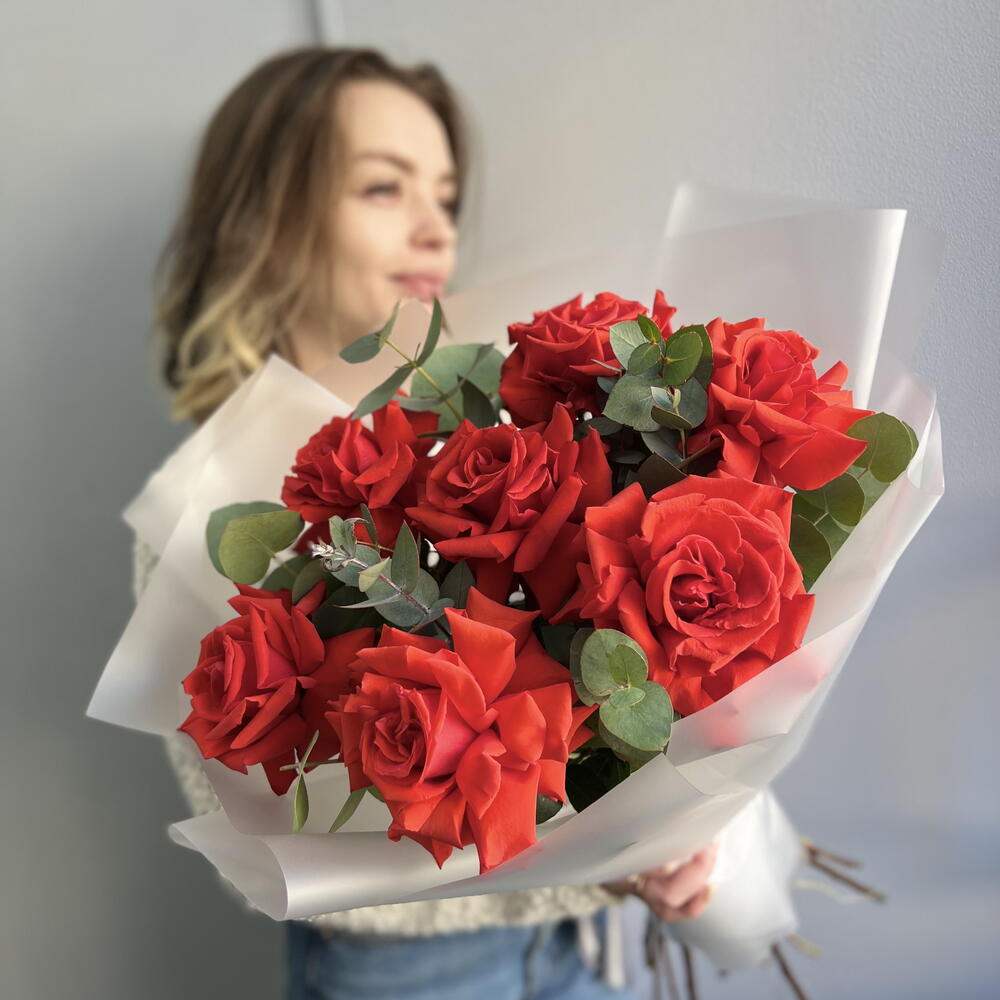 Букет из 7 французских роз и эвкалипта